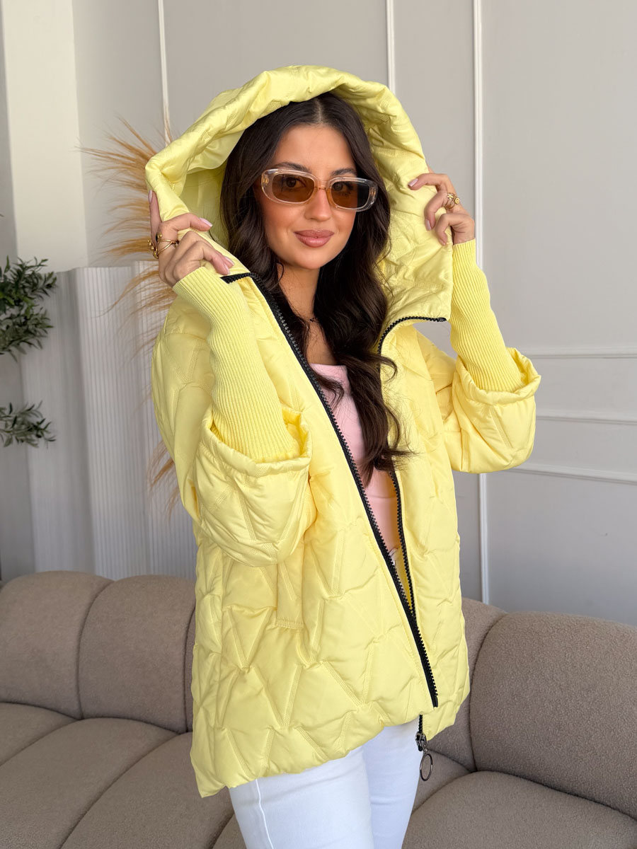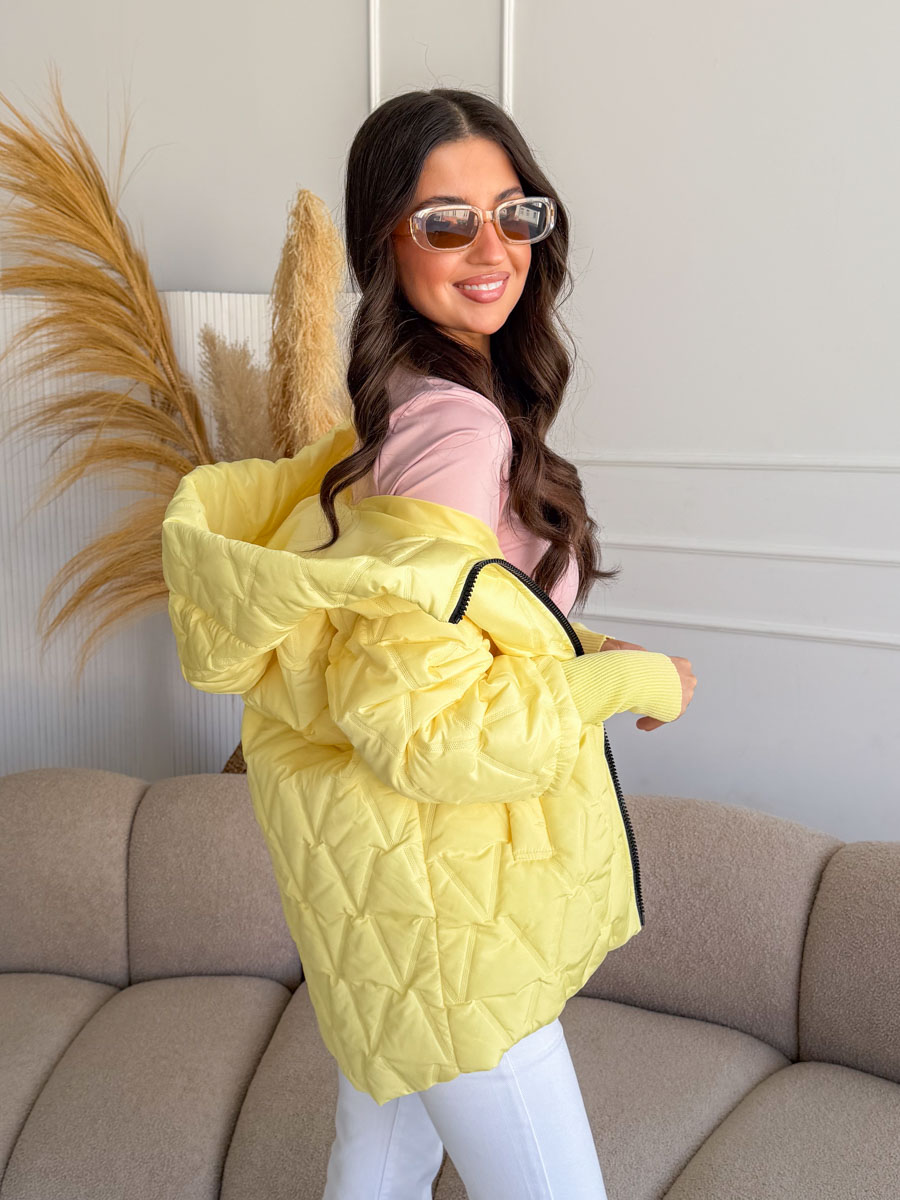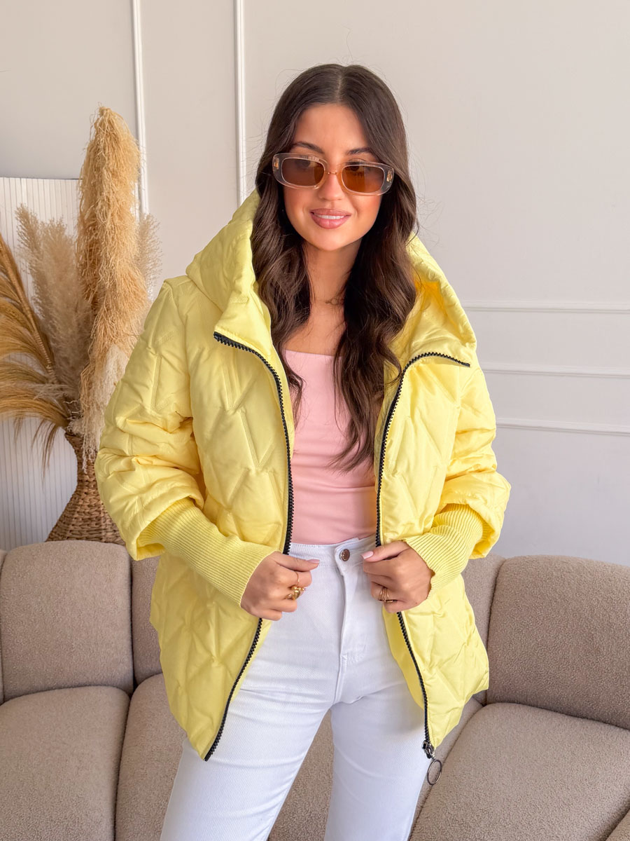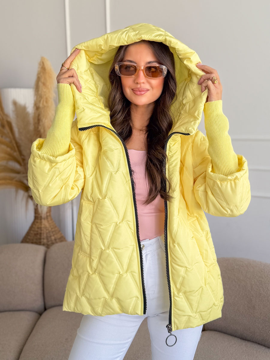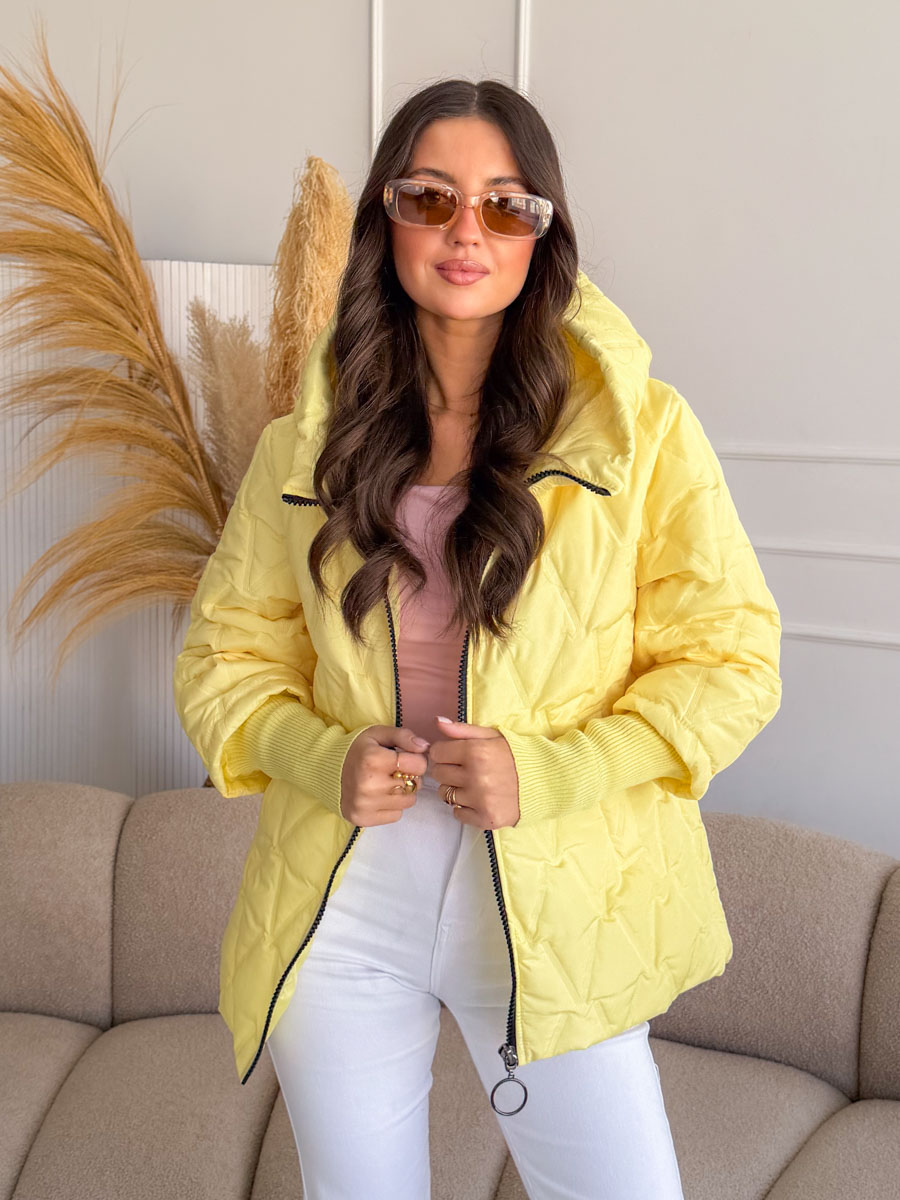 Kurtka pikowana z dzianinowymi rękawami Bananowa – Quilnara to modna i wygodna propozycja na chłodniejsze dni, która łączy sportowy styl z kobiecym charakterem. Model wyróżnia się pikowaną strukturą materiału oraz miękkimi, dzianinowymi rękawami, które zapewniają dodatkowy komfort i swobodę ruchów. Praktyczny kaptur chroni przed wiatrem i chłodem, a zapięcie na zamek błyskawiczny sprawia, że kurtka jest wygodna w codziennym użytkowaniu. Bananowy, jasny odcień dodaje stylizacji świeżości i energii, dzięki czemu kurtka świetnie komponuje się zarówno z jeansami, jak i sportowymi spodniami, tworząc modne i funkcjonalne zestawy na co dzień.