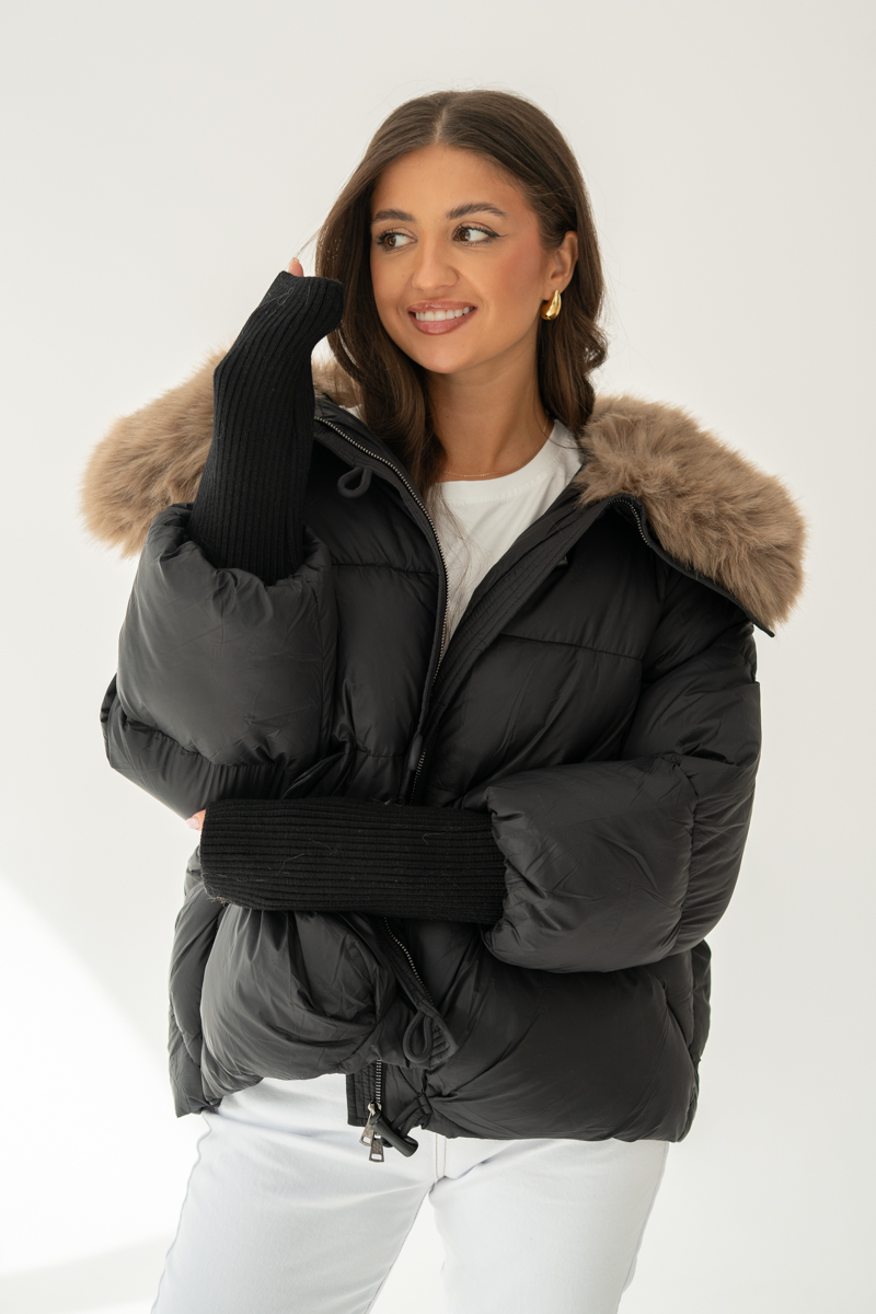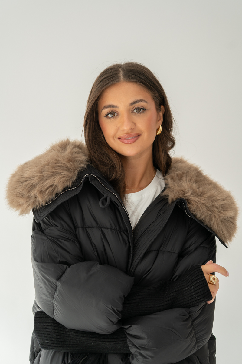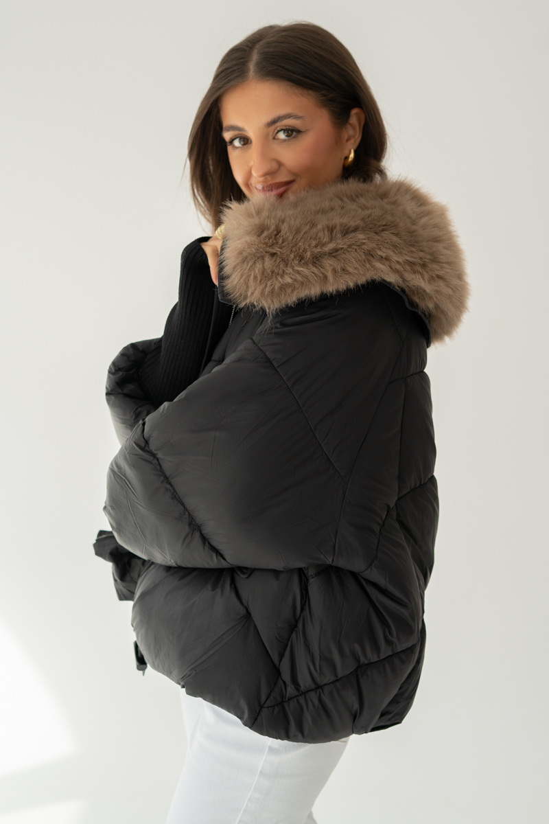 Kurtka pikowana z futrzanym kołnierzem Czarny – Furienne