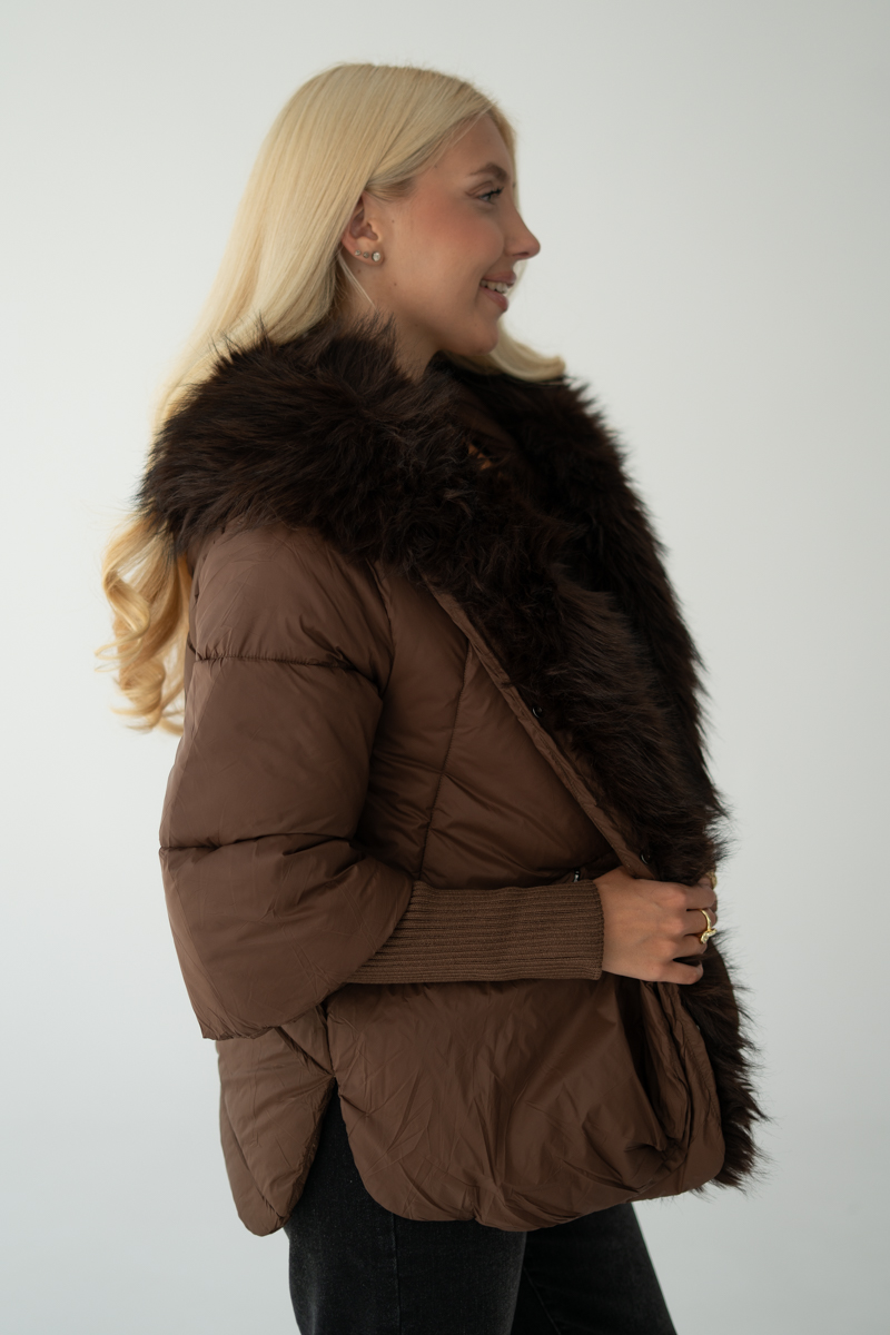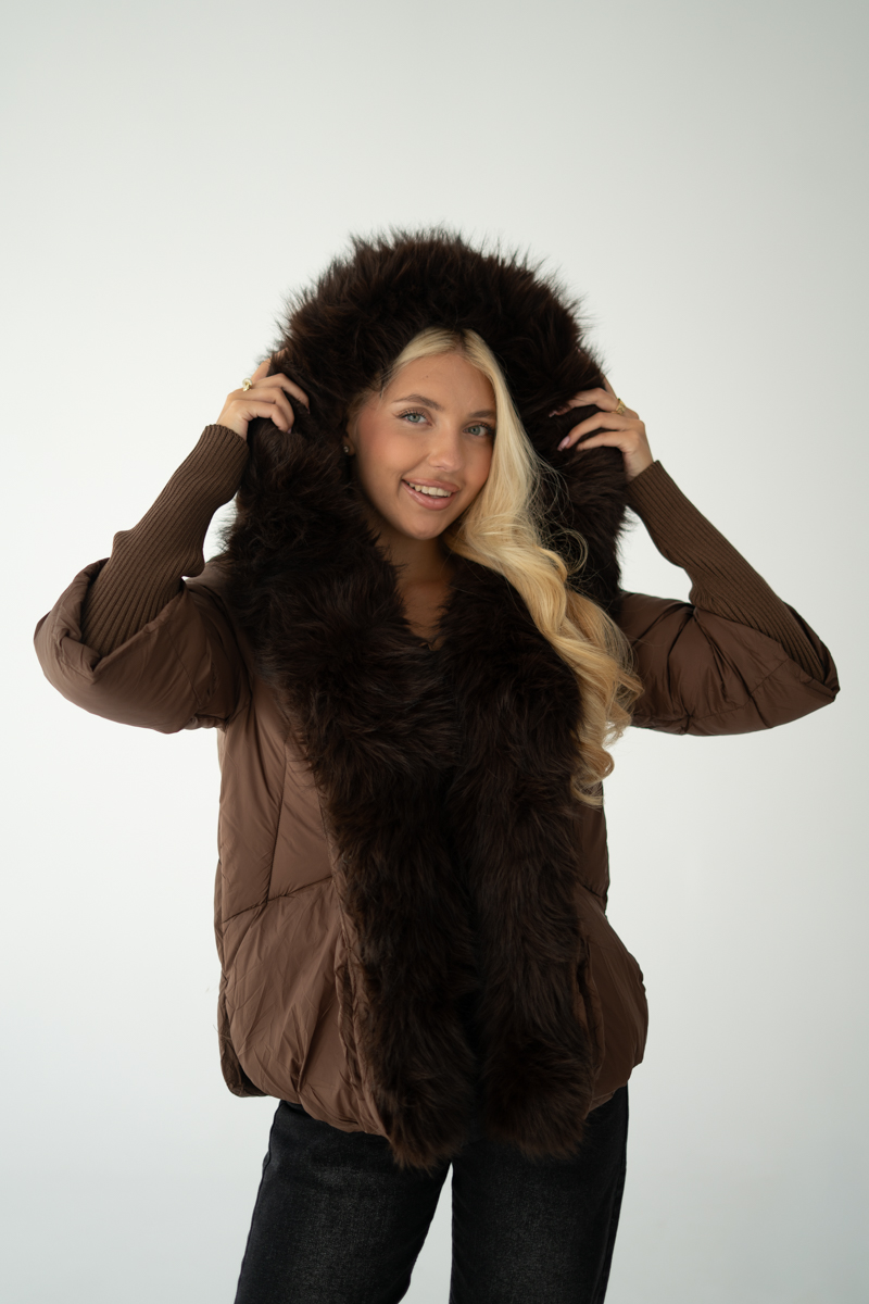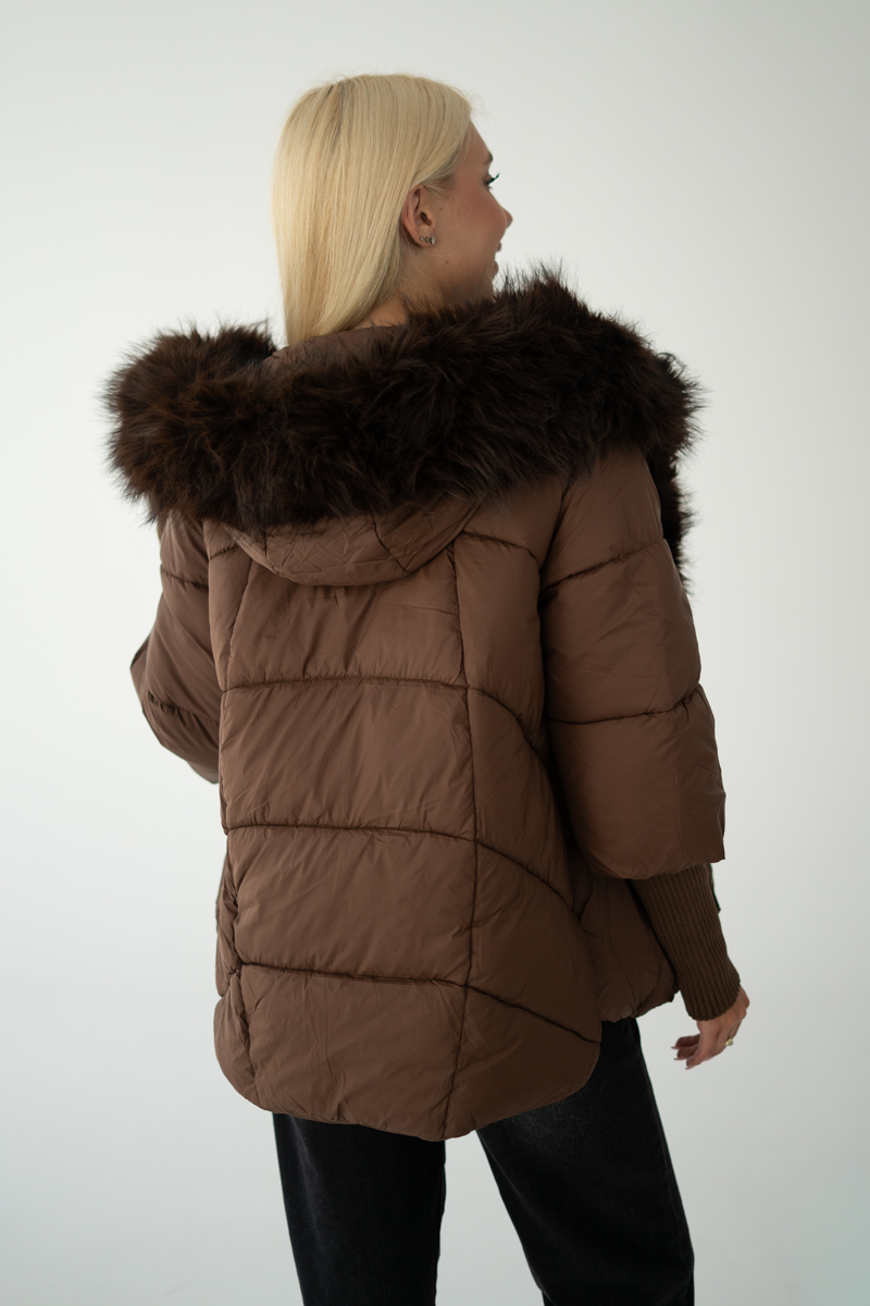 Kurtka pikowana z kapturem i futerkiem Czekoladowy – Alvarine