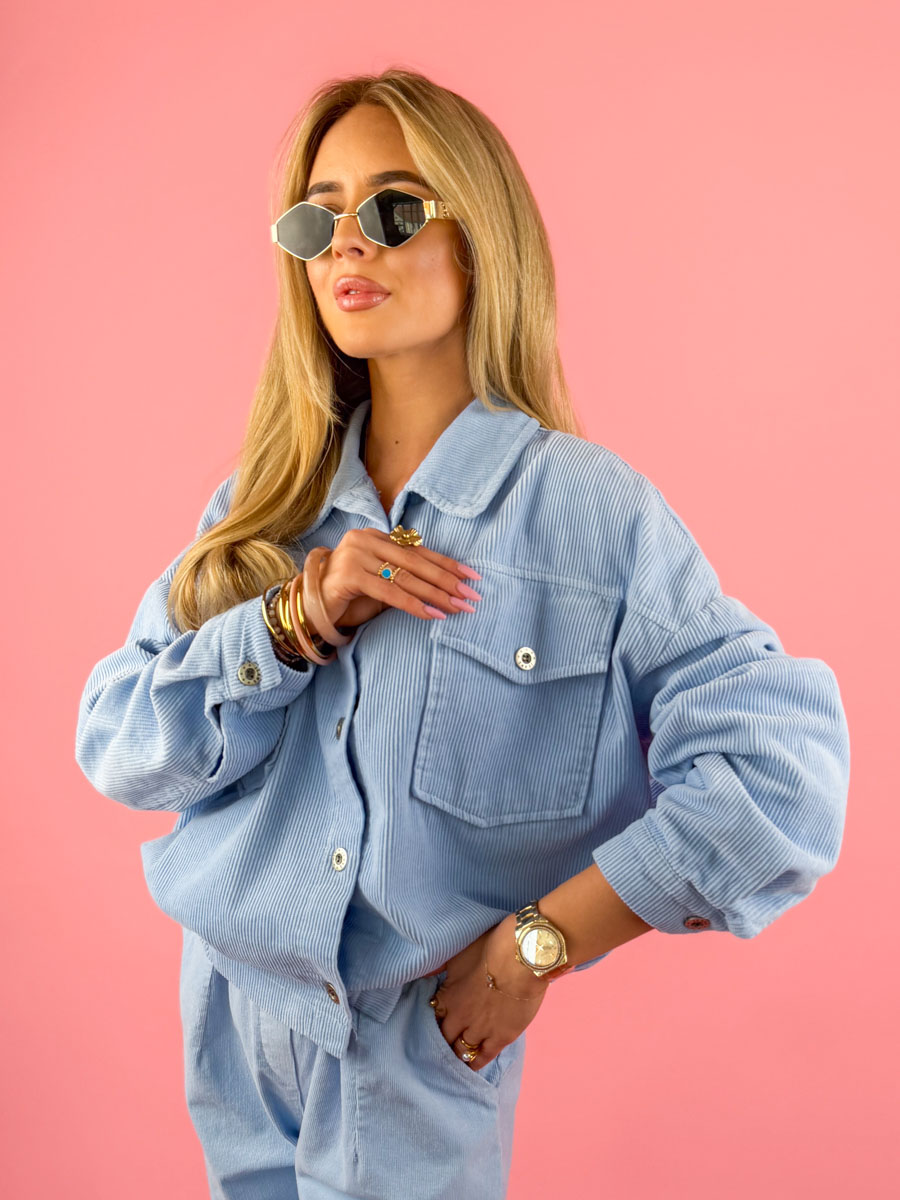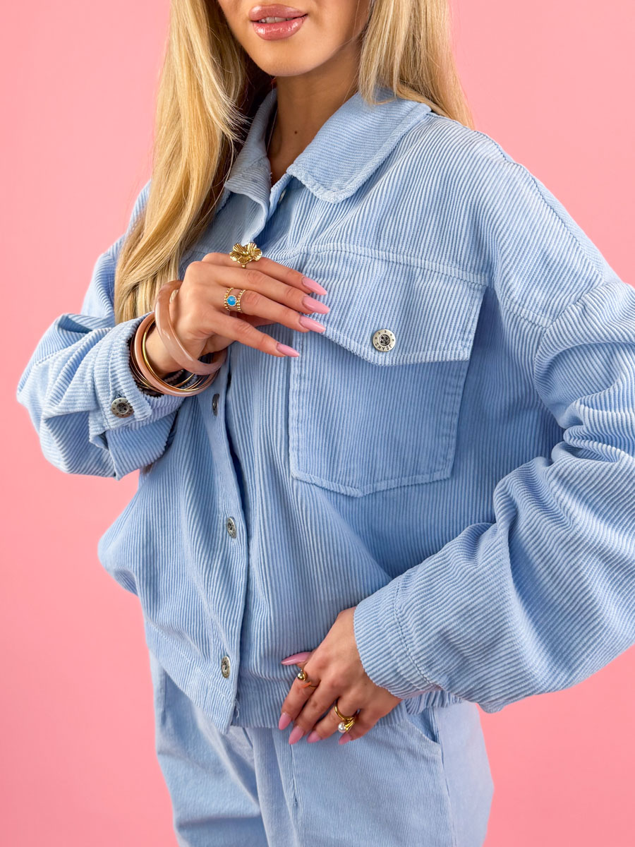 Kurtka sztruksowa zapinana na napy Błękitna – Cordessa