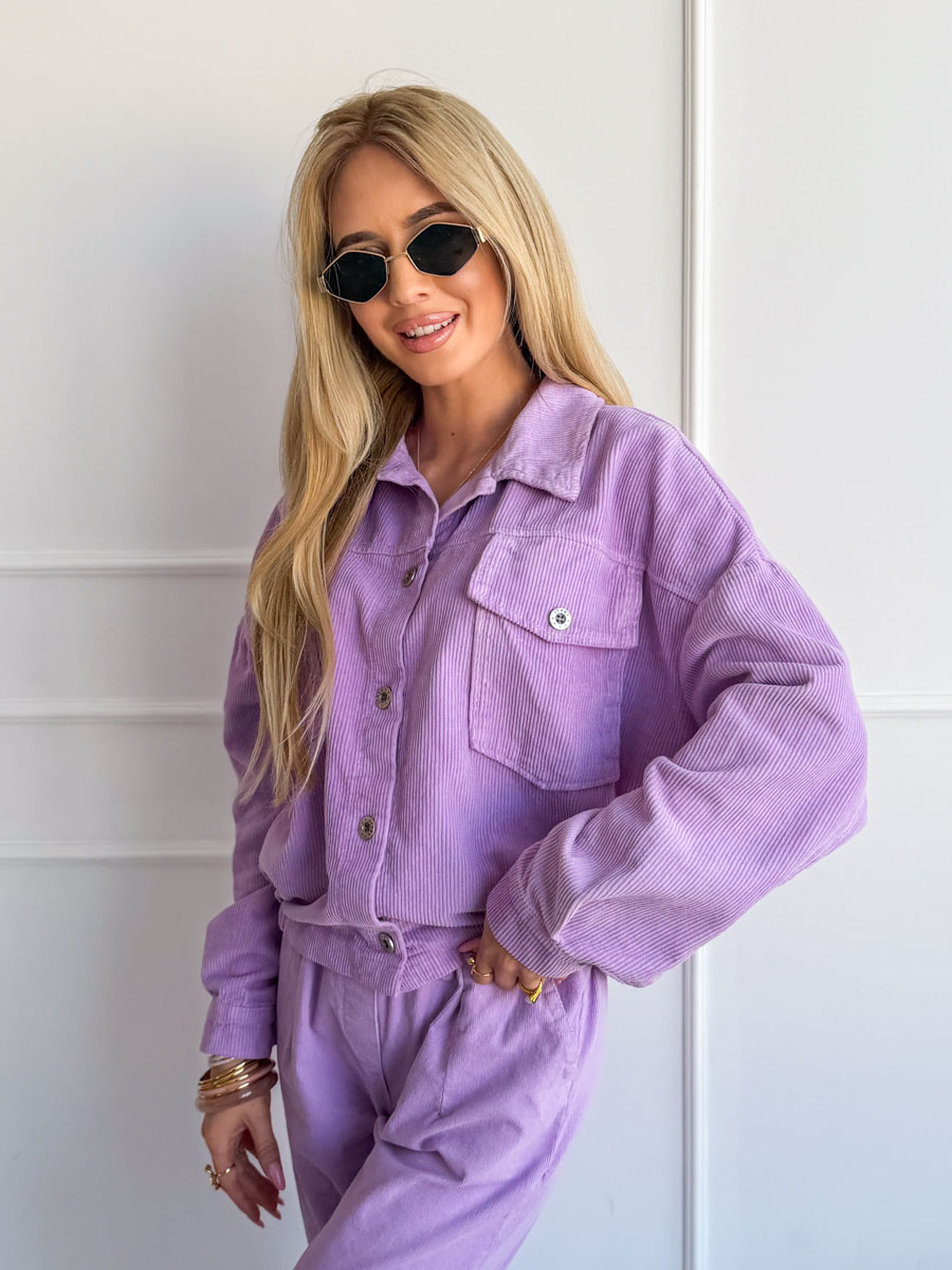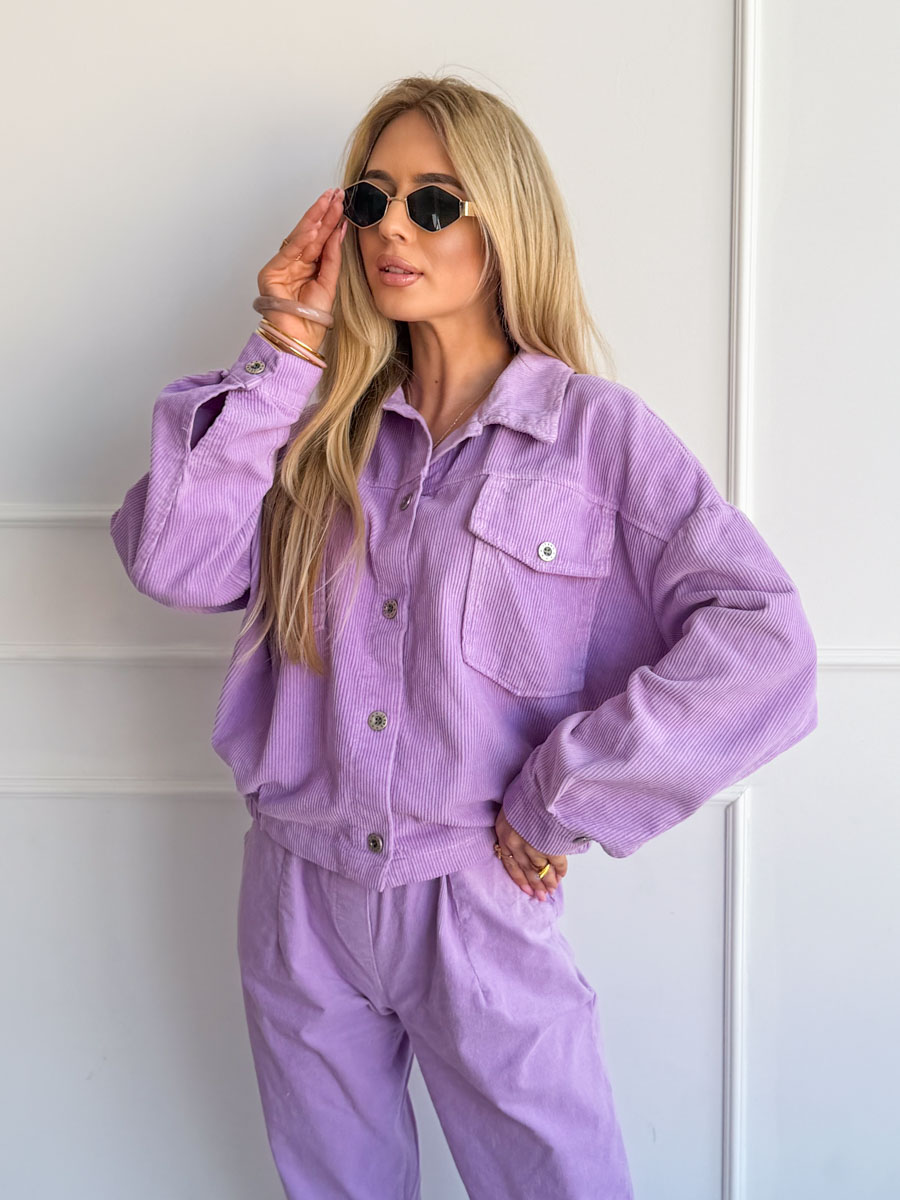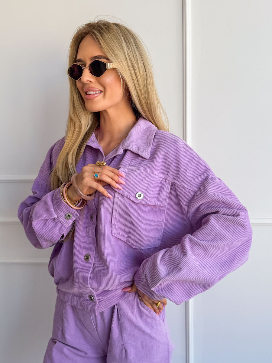 Kurtka sztruksowa zapinana na napy Liliowa – Cordessa