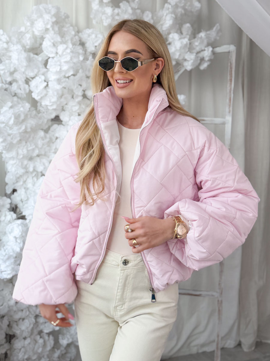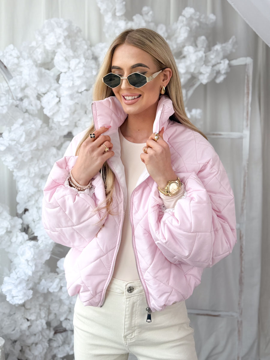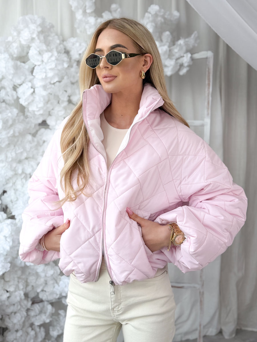 Kurtka wiosenna Flarella w pudrowym odcieniu to doskonała propozycja dla kobiet ceniących subtelny, kobiecy styl. Wykonana z lekkiego, pikowanego materiału, zapewnia komfort noszenia i sprawdzi się idealnie w okresie przejściowym. Krótszy fason pięknie podkreśla sylwetkę, a poszerzane rękawy nadają całości modnego, lekko oversize’owego charakteru. Wysoki kołnierz oraz praktyczne zapięcie na suwak chronią przed chłodem i wiatrem. Delikatny kolor dodaje stylizacji lekkości i elegancji, dzięki czemu kurtka świetnie uzupełni zarówno codzienne, jak i bardziej dopracowane zestawy.