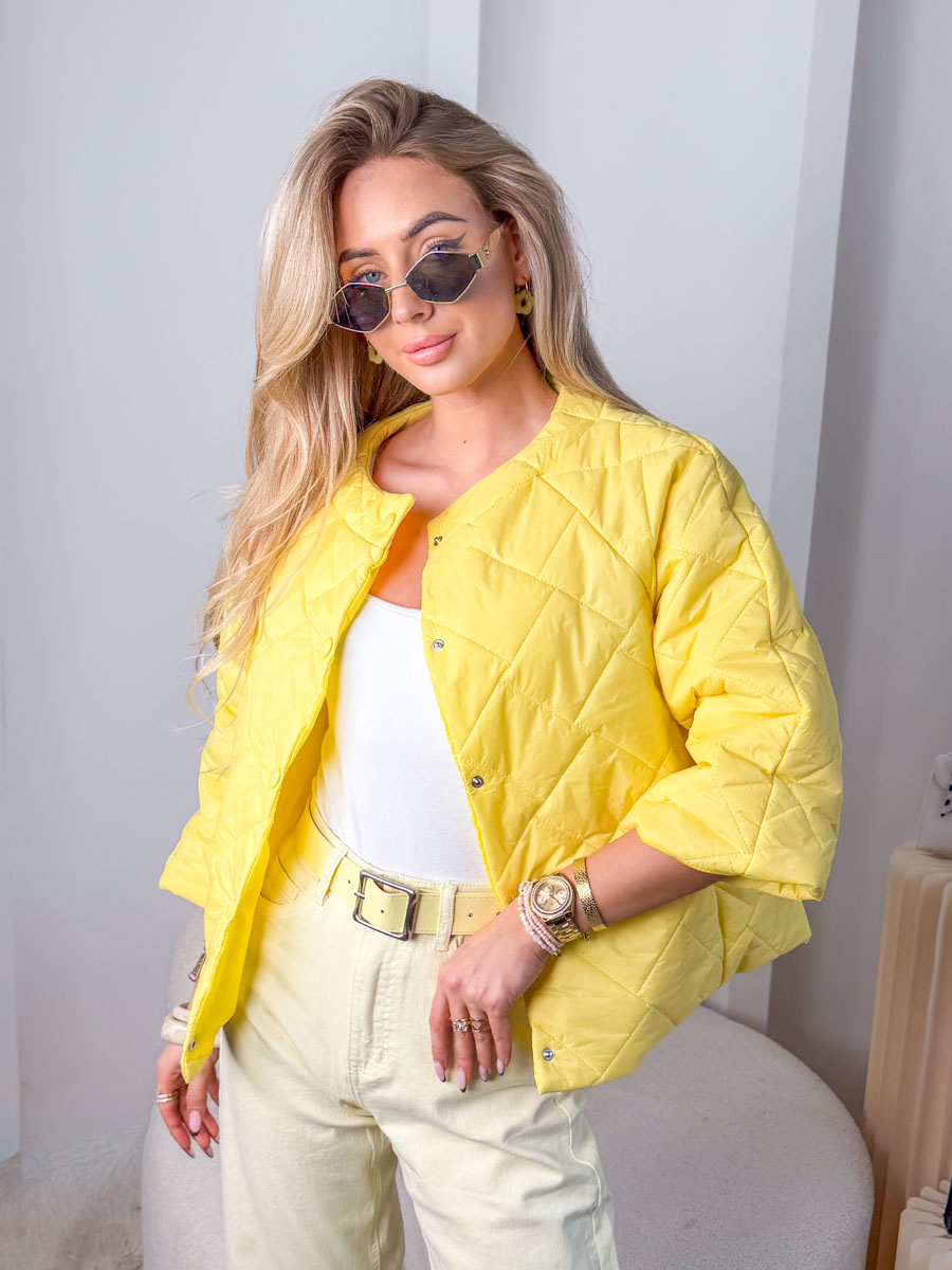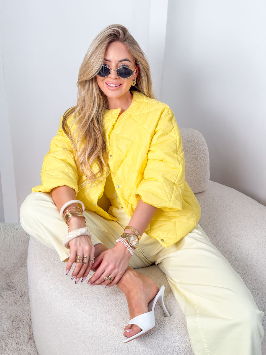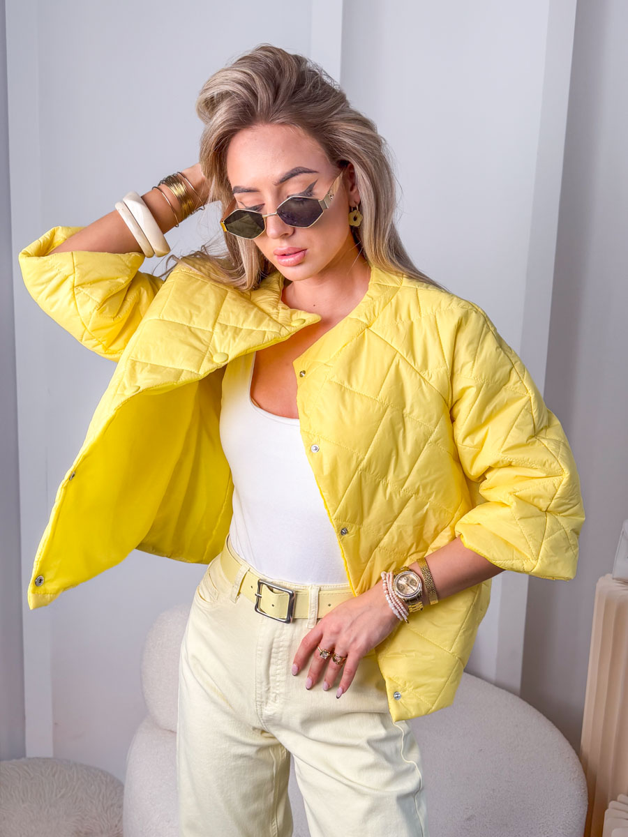 Kurtka zapinana na napy Żółty – Snapora to wyrazista i stylowa propozycja dla kobiet, które lubią łączyć wygodę z modowym akcentem, a jej intensywny, słoneczny odcień pięknie ożywia każdą stylizację i dodaje energii nawet w chłodniejsze dni. Model wykonany został z lekkiego, przyjemnego w dotyku materiału o subtelnym pikowaniu, które nadaje całości nowoczesnego charakteru, a wygodne zapięcie na napy podkreśla minimalistyczny design i zapewnia komfort użytkowania. Luźniejszy krój pozwala na swobodne dopasowanie do sylwetki oraz noszenie kurtki zarówno na cienki top, jak i cieplejszy sweter, dzięki czemu świetnie sprawdzi się w przejściowych sezonach. Snapora w żółtym kolorze doskonale komponuje się z jasnymi spodniami, denimem czy neutralnymi dodatkami, tworząc świeże, kobiece i pełne światła stylizacje na co dzień.