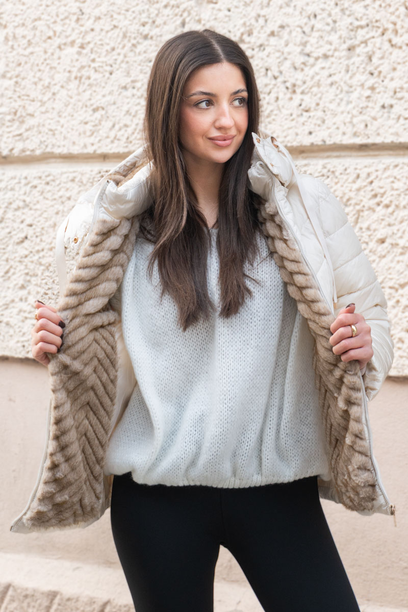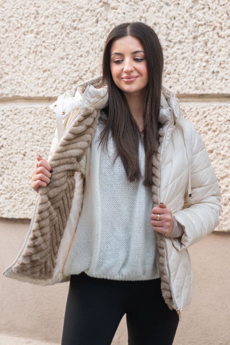 Ciepła kurtka zimowa pikowana z futrzanym kapturem to idealny wybór na mroźne dni. Jest lekka, trwała i odporna na warunki atmosferyczne, a jednocześnie łatwa w pielęgnacji. Pikowana konstrukcja skutecznie zatrzymuje ciepło, zapewniając komfort nawet przy niskich temperaturach. Ozdobny kaptur wykończony futerkiem dodaje elegancji i chroni przed wiatrem, podkreślając zimowy charakter kurtki. To praktyczne i modne okrycie wierzchnie, które świetnie sprawdzi się zarówno w codziennych stylizacjach, jak i podczas dłuższych spacerów w chłodne dni.