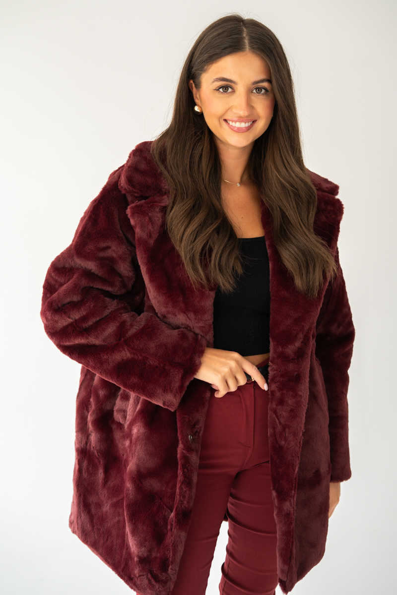 Sztuczne futro damskie długie Bordowy – Furissea