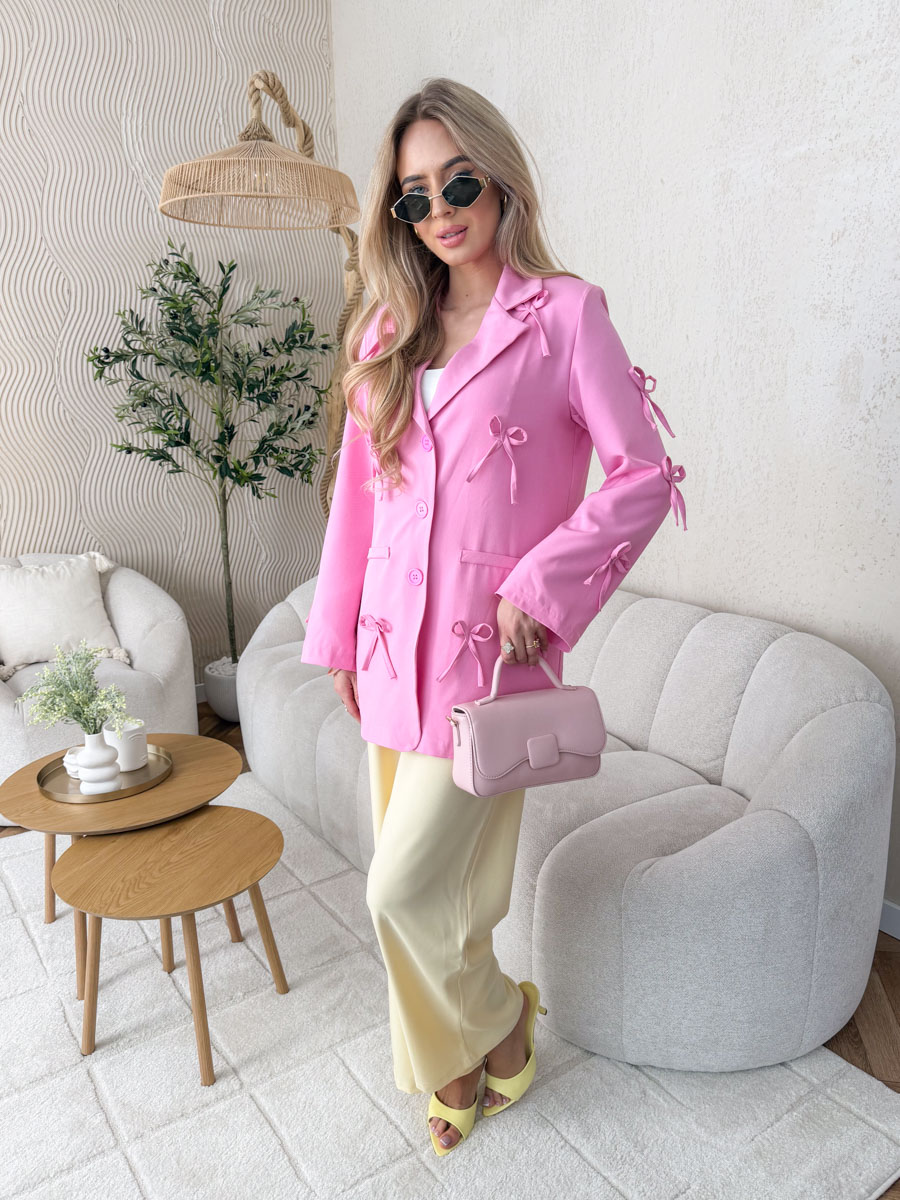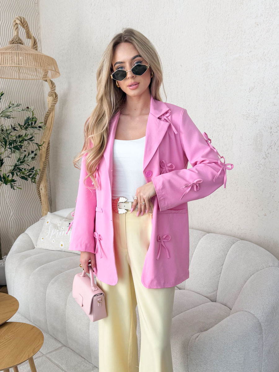 Marynarka z kokardkami zapinana na guziki Pudrowy – Bowlinea