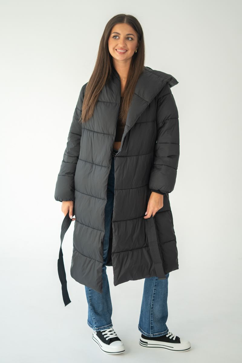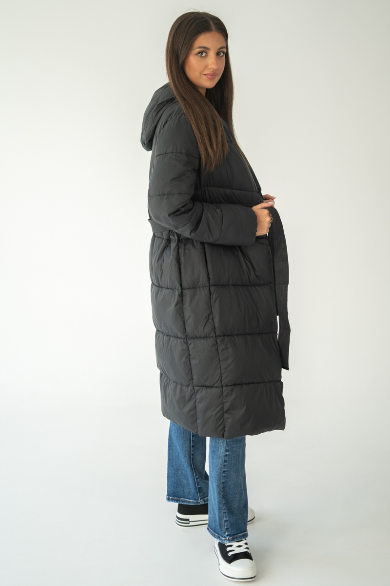 Długi płaszcz puchowy z kapturem Czarny – Calvoria