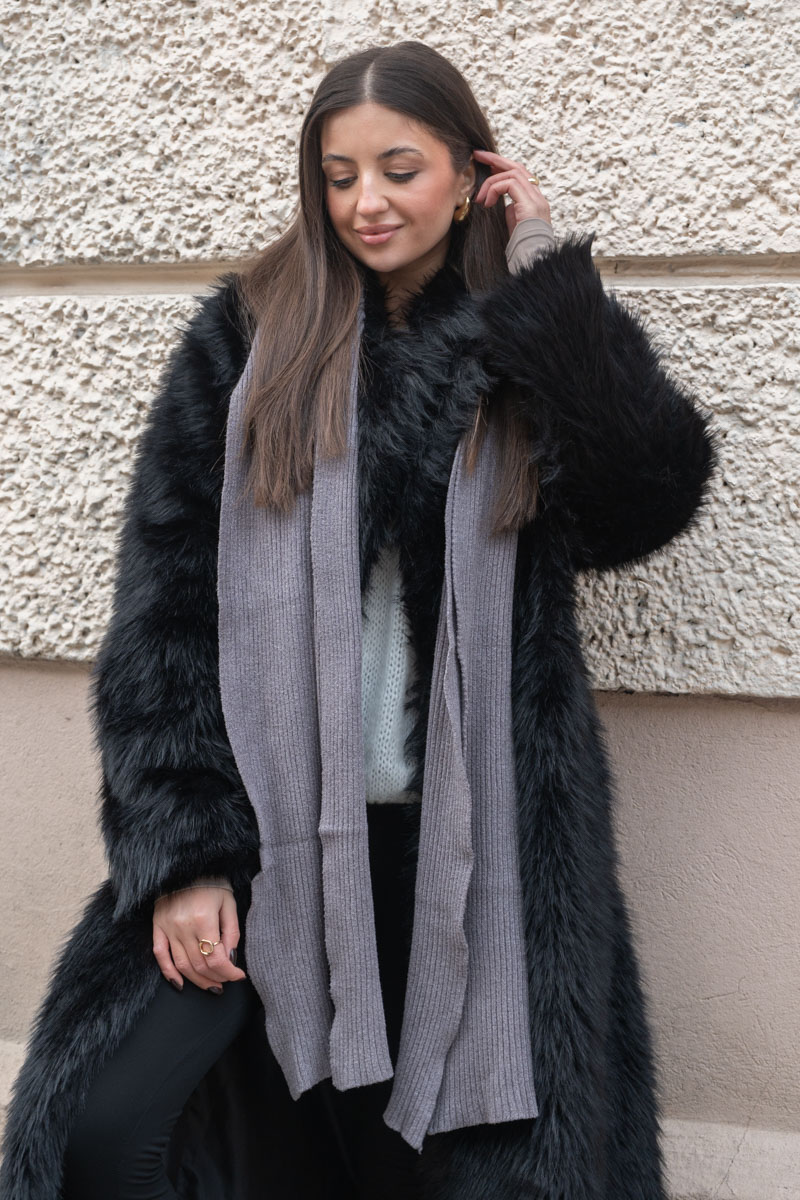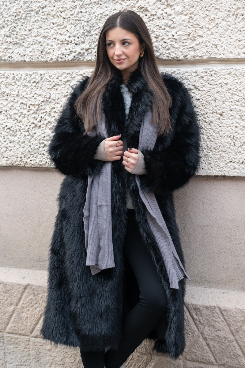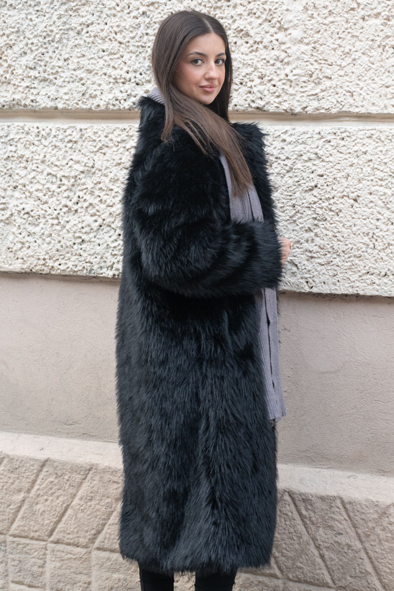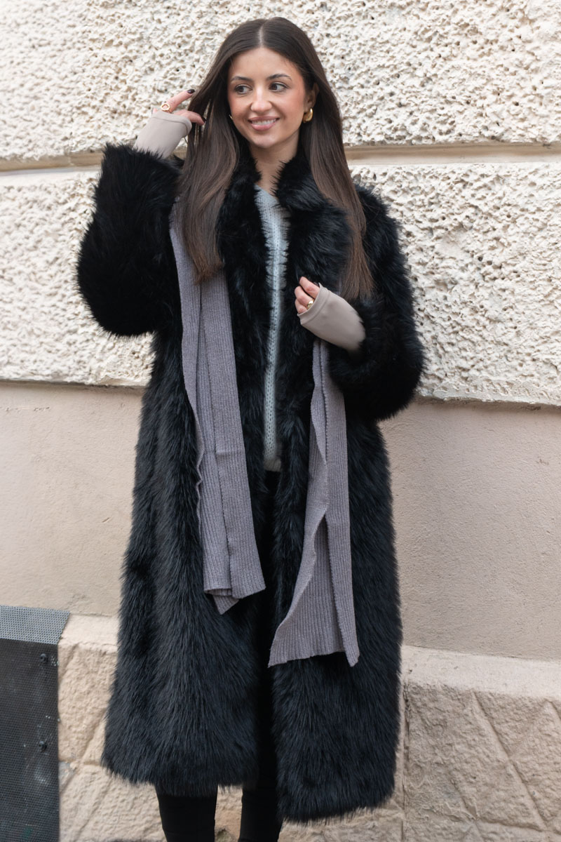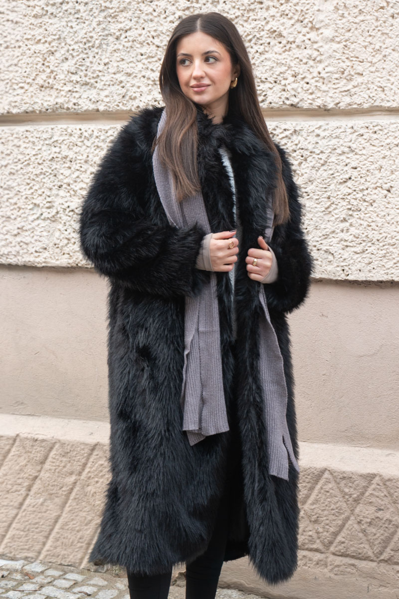 Długie futro o puszystej strukturze Czarny – Flavynne