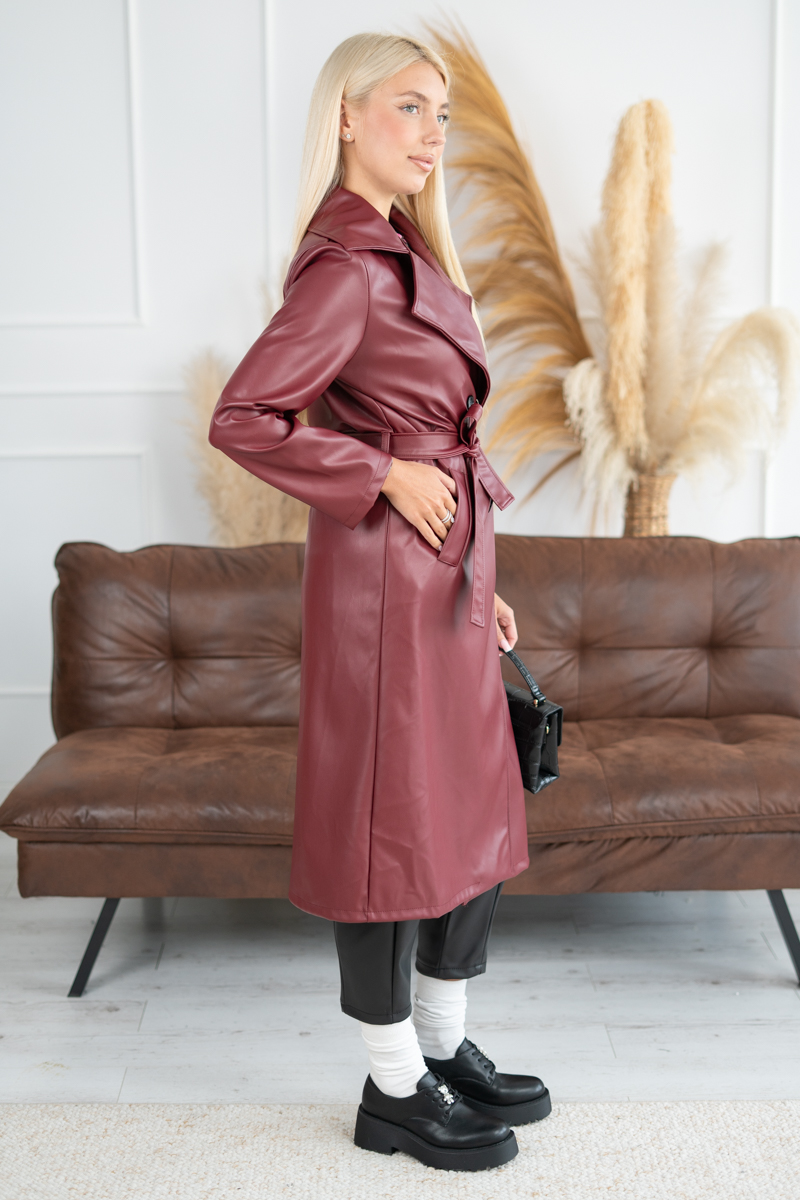 Płaszcz damski z eko skóry Bordowy – Feralyne