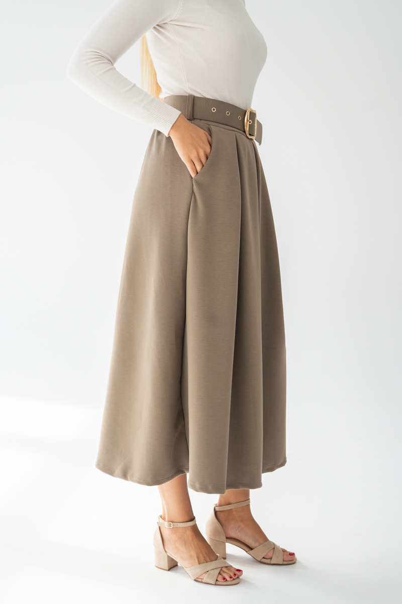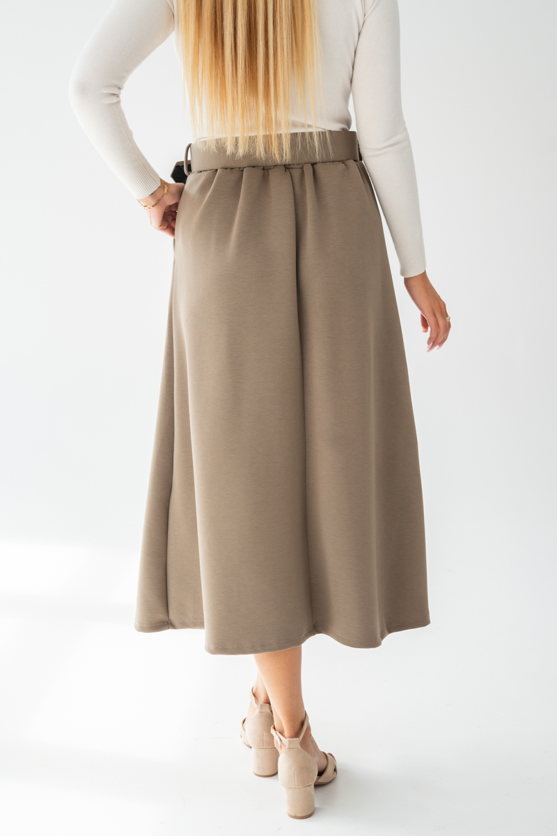 Spódnica midi z paskiem Beżowy – Foldyssa