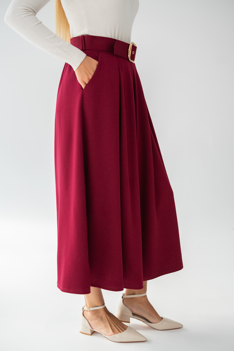 Spódnica midi z paskiem Bordowy – Foldyssa