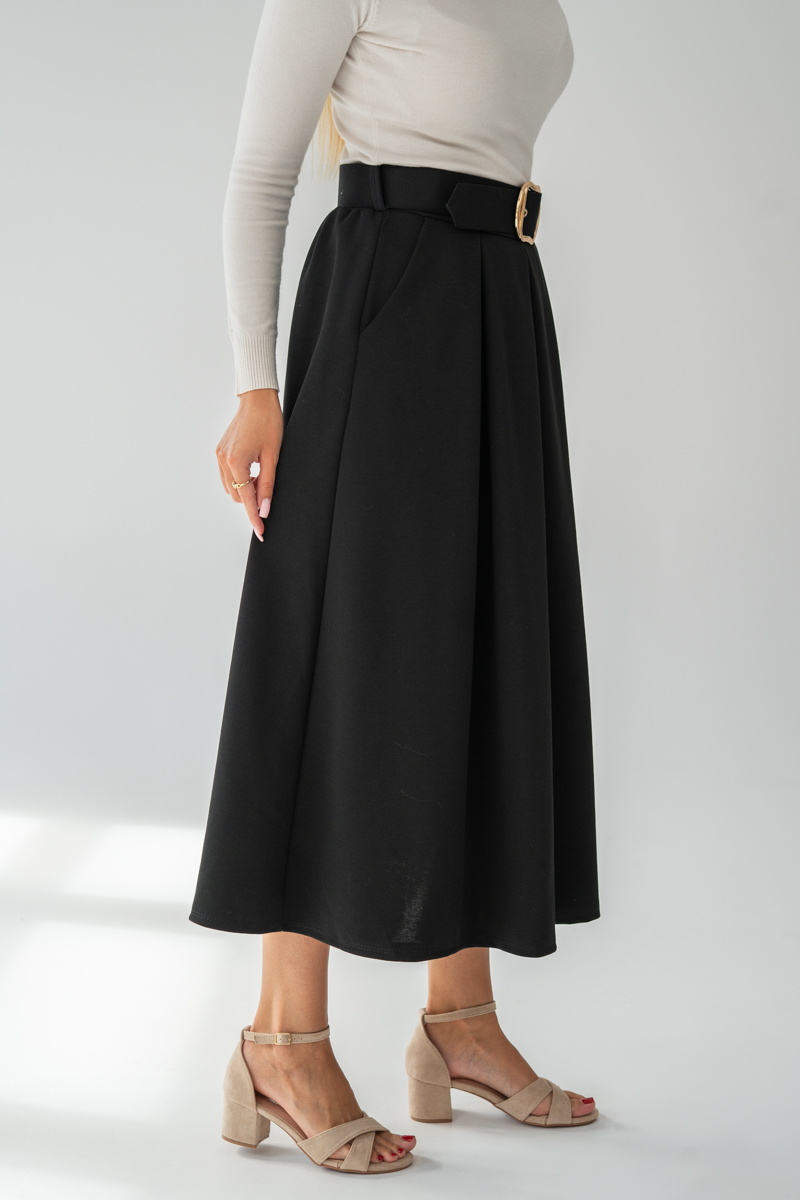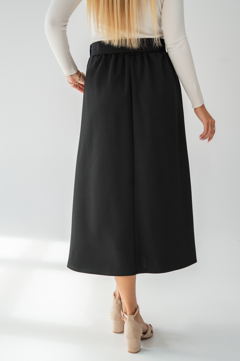 Spódnica midi z paskiem to elegancka i uniwersalna propozycja, idealna zarówno na co dzień, jak i na specjalne okazje. Wykonana z lekkiej, przyjemnej w dotyku tkaniny, zapewnia komfort noszenia i swobodę ruchów. Klasyczna długość midi nadaje stylizacji kobiecego charakteru, a dołączony pasek pięknie podkreśla talię i modeluje sylwetkę. Prosty, ponadczasowy fason sprawia, że spódnica świetnie komponuje się zarówno z koszulą i szpilkami w eleganckim wydaniu, jak i z t-shirtem oraz sneakersami w bardziej casualowym stylu. To must-have w kobiecej garderobie.