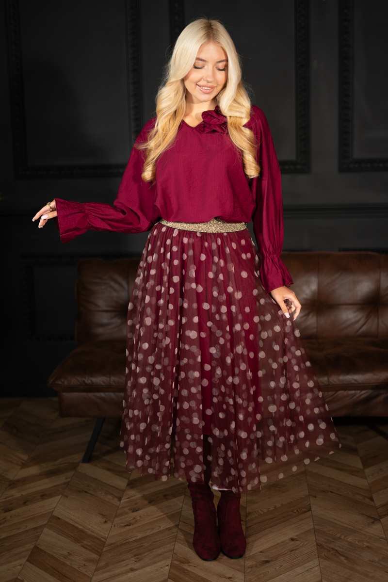 Spódnica tiulowa ze złotą gumką Bordowy – Zolivra