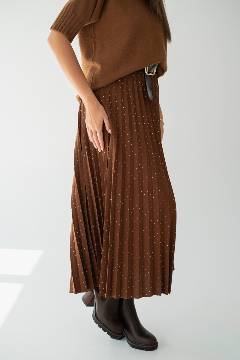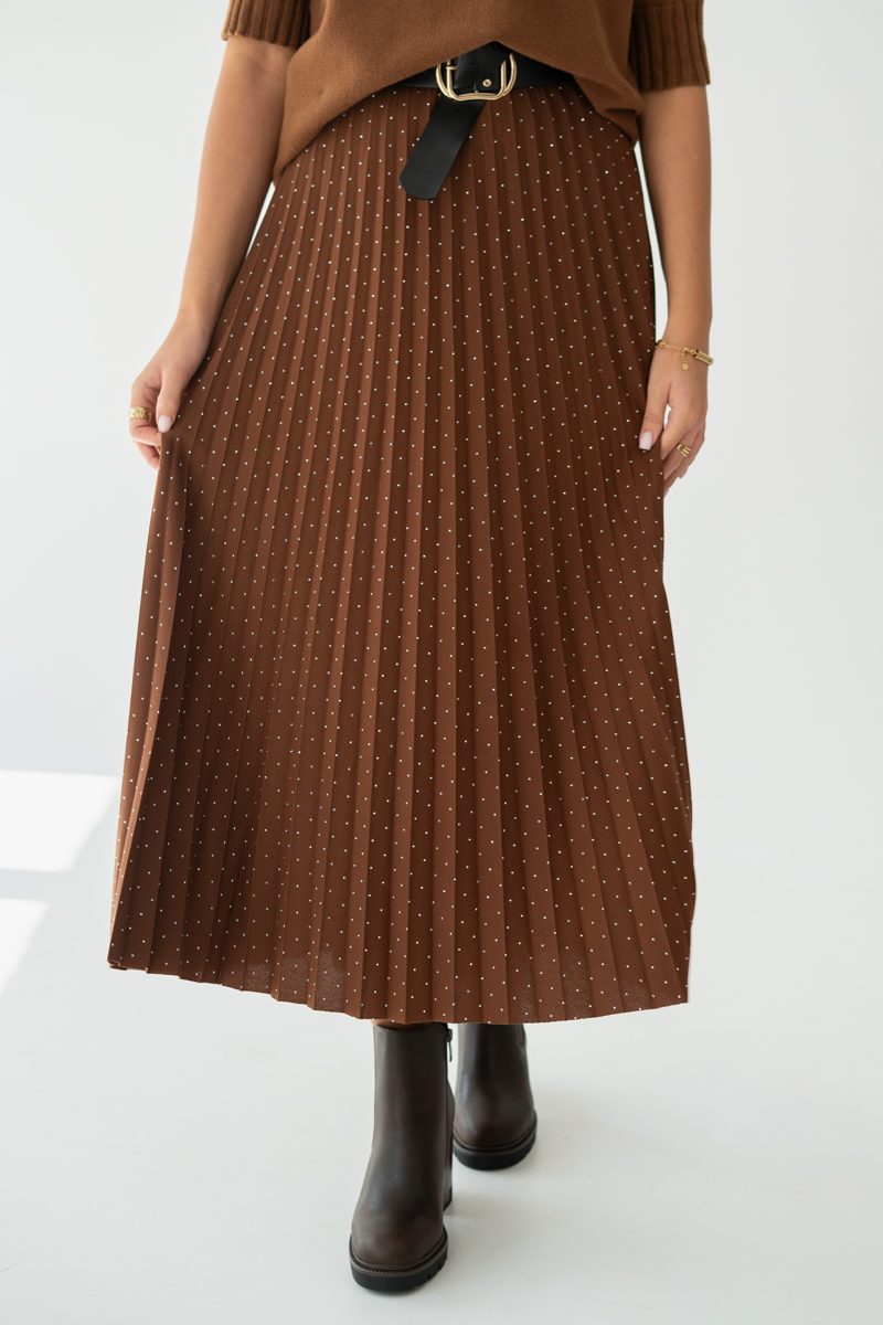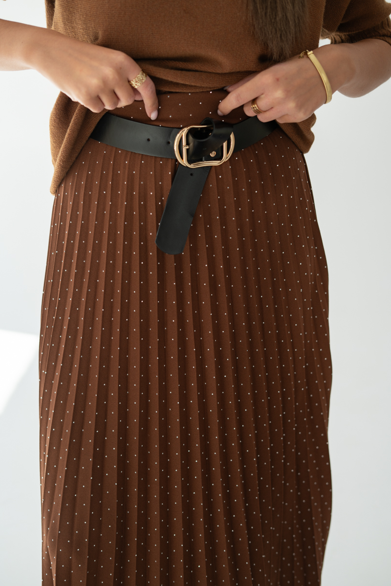 Spódnica z cyrkoniami plisowana midi Czekoladowy – Cryssira
