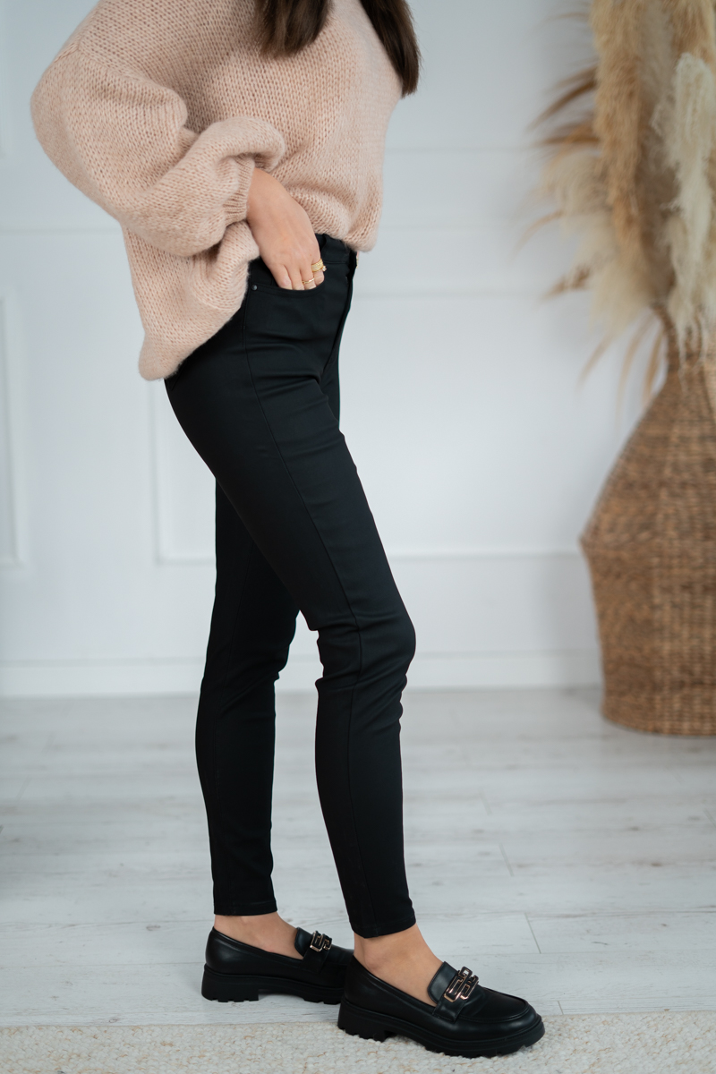Spodnie damskie woskowane Lysavine to idealny wybór dla kobiet ceniących wygodę połączoną z eleganckim wyglądem. Wykonane z elastycznego, miękkiego materiału, doskonale dopasowują się do sylwetki, podkreślając jej atuty i zapewniając komfort przez cały dzień. Klasyczny krój ze zwężanymi nogawkami optycznie wysmukla nogi, a wysoki stan gwarantuje idealne dopasowanie i wygodę w ruchu. Uniwersalna czerń sprawia, że spodnie Lysavine świetnie komponują się zarówno z casualowymi swetrami, jak i eleganckimi koszulami. To niezastąpiona baza do wielu stylizacji – od codziennych po bardziej wyjściowe.
