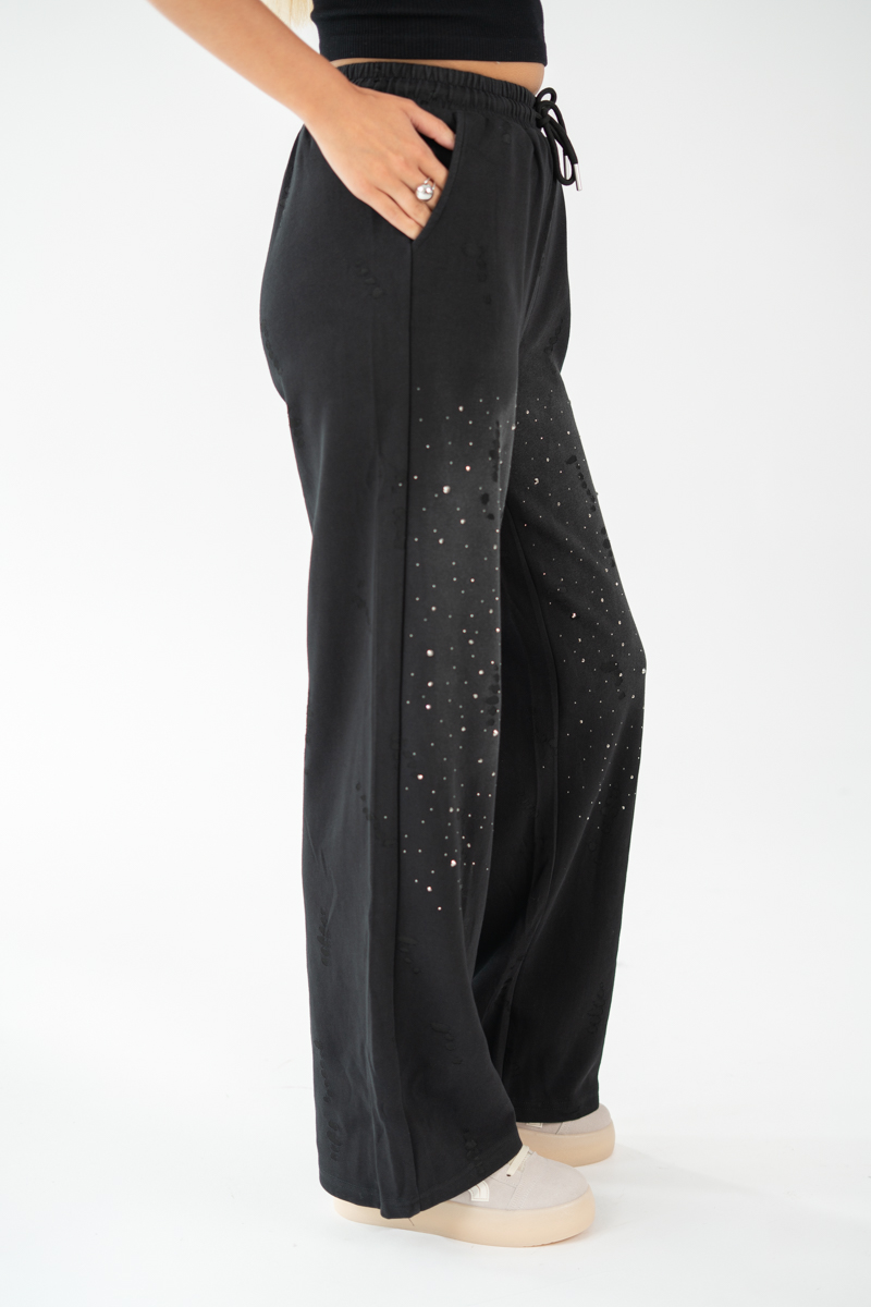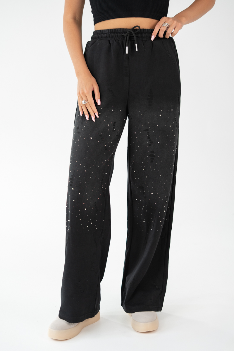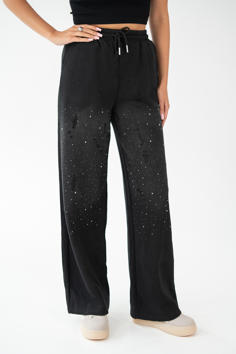 Spodnie dresowe z cyrkoniami Czarny – Glemyra