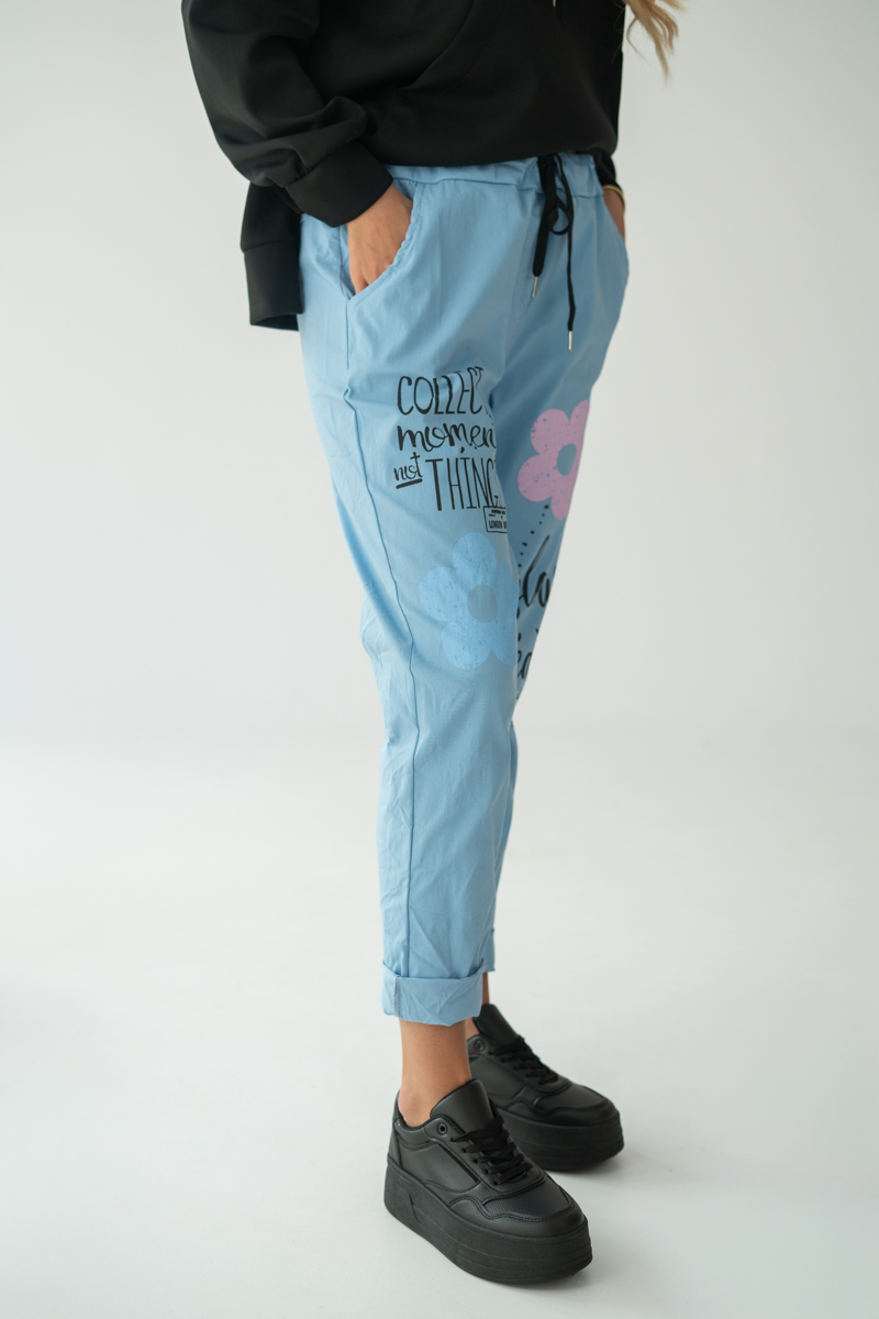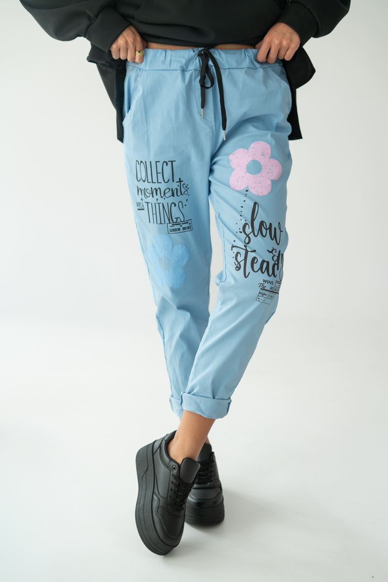 Spodnie gnieciuchy z wzorem Błękitny – Fayenira