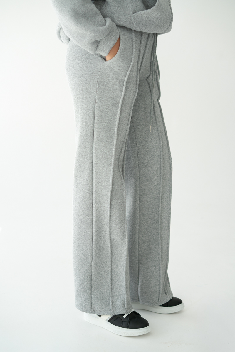 Spodnie z zakładką i wiązaniem Szary – Cotivra