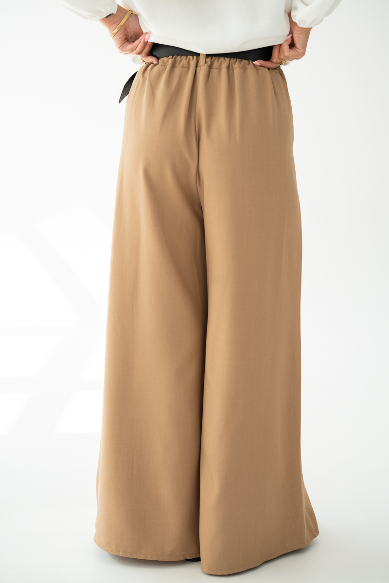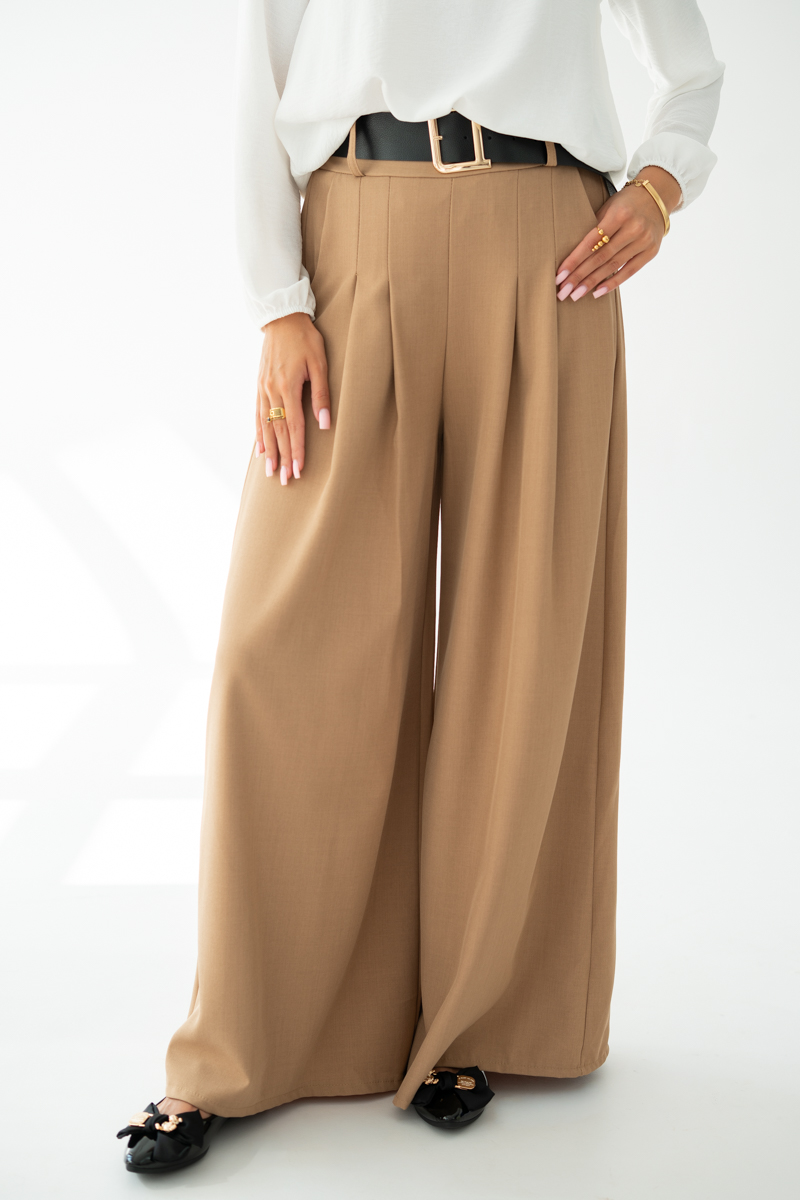 Szerokie spodnie z paskiem Camelowy – Darvynne
