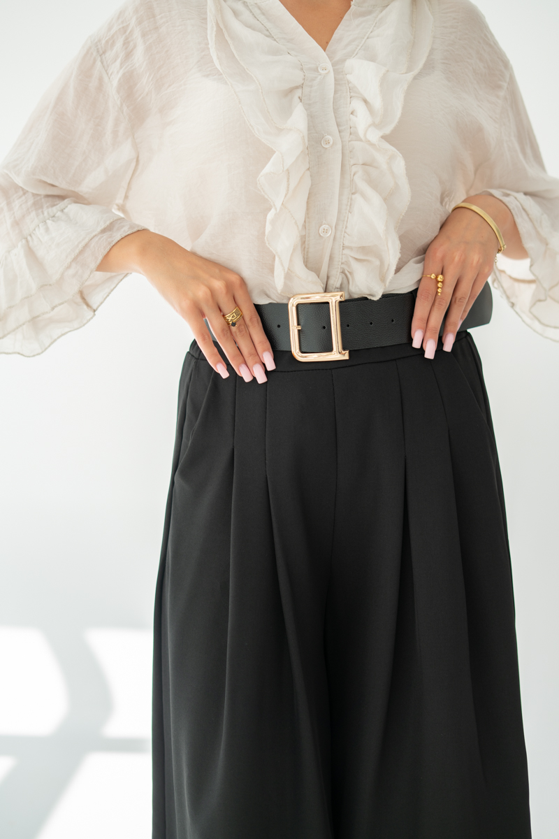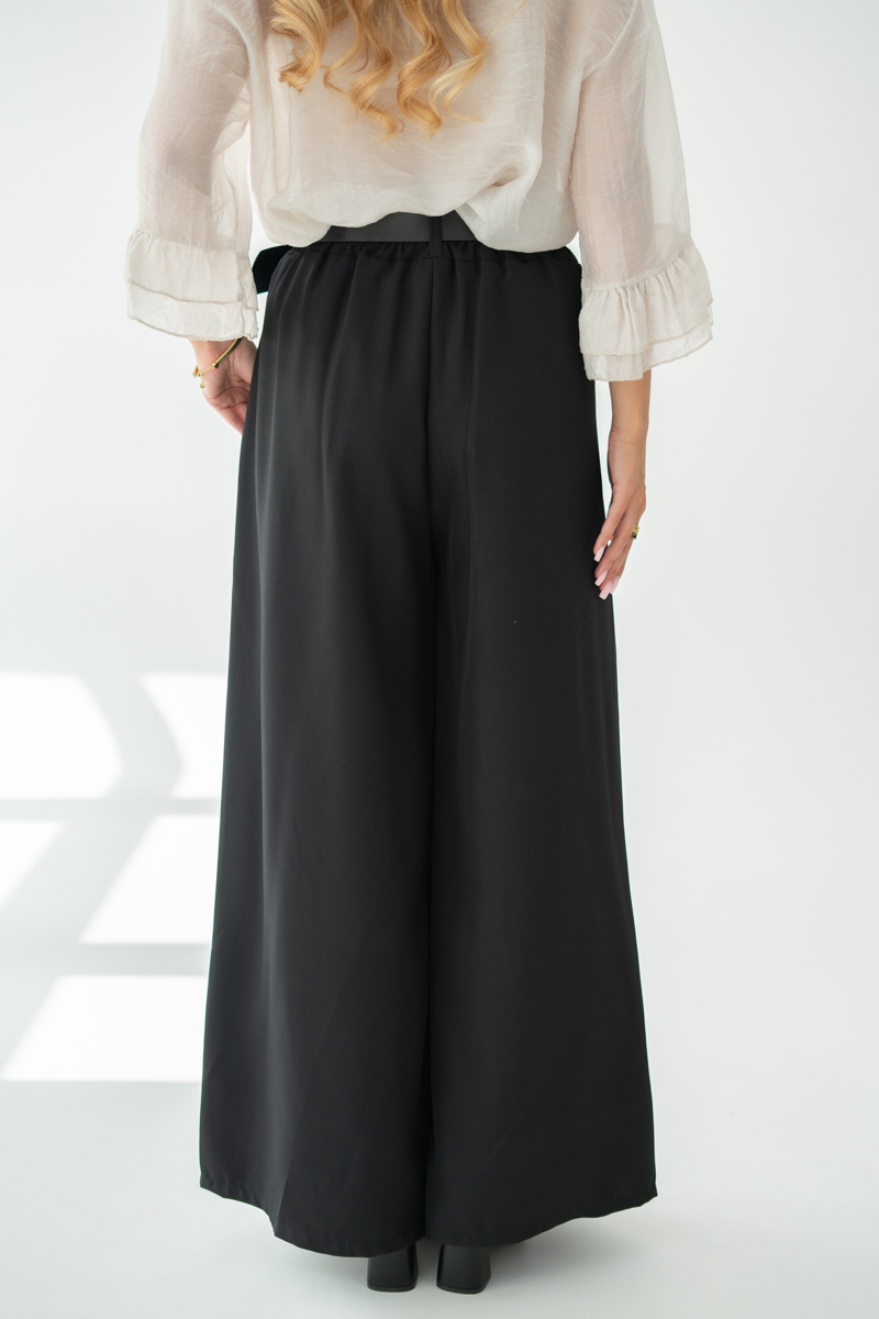 Szerokie spodnie z paskiem Czarny – Darvynne