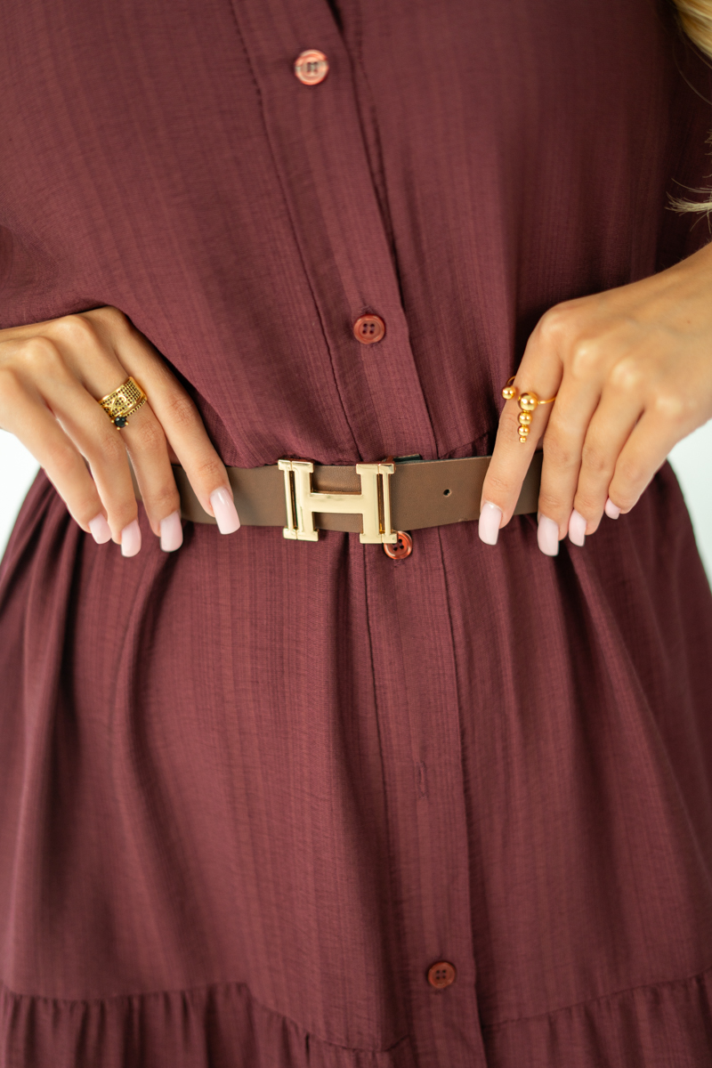 Sukienka koszulowa z paskiem Bordowy – Helvoria