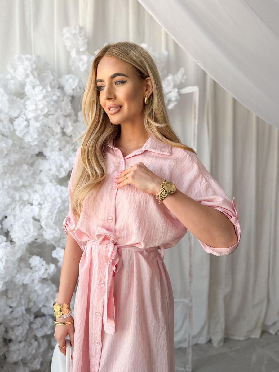 Sukienka koszulowa w paski Różowa – Stripella Dress