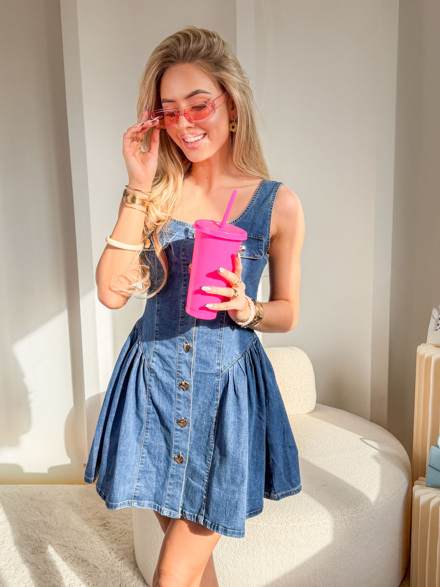 Sukienka jeansowa na ramiączkach w klasycznym, niebieskim odcieniu to doskonała propozycja na ciepłe dni. Wykonana z lekkiego, przyjemnego w dotyku denimu, zapewnia komfort noszenia i swobodę ruchów. Dopasowana góra na szerokich ramiączkach pięknie podkreśla ramiona, a rozkloszowany dół nadaje sylwetce lekkości i dziewczęcego uroku. Ozdobne przeszycia i subtelne detale dodają całości modnego charakteru. To idealny wybór na wakacyjne spacery, spotkania z przyjaciółmi i codzienne stylizacje w casualowym wydaniu.