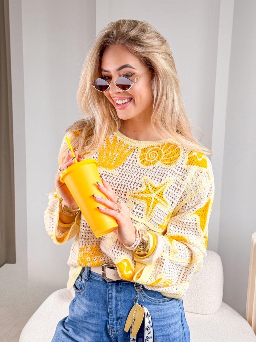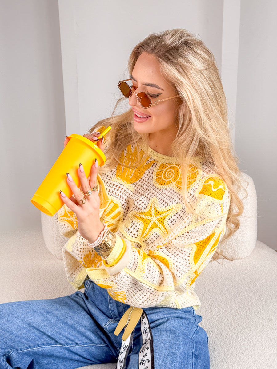 Sweter ozdobnie pleciony Żółty – Ornelia