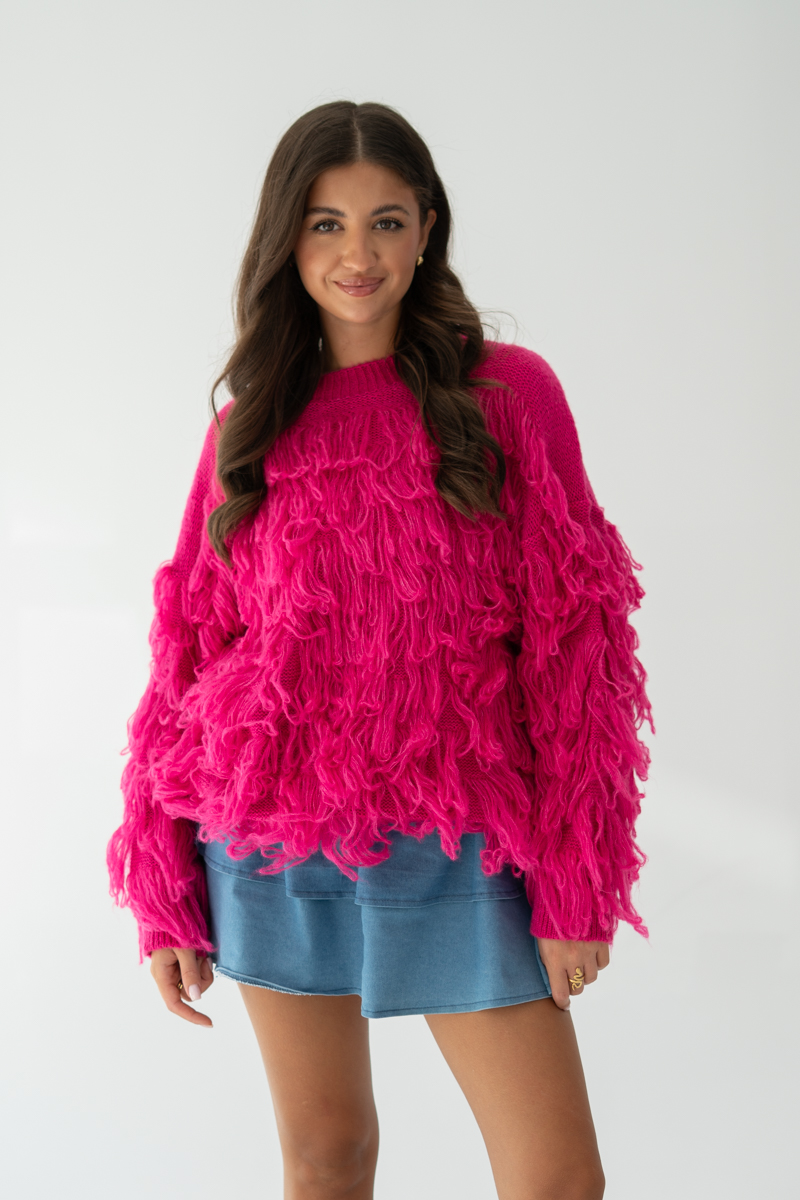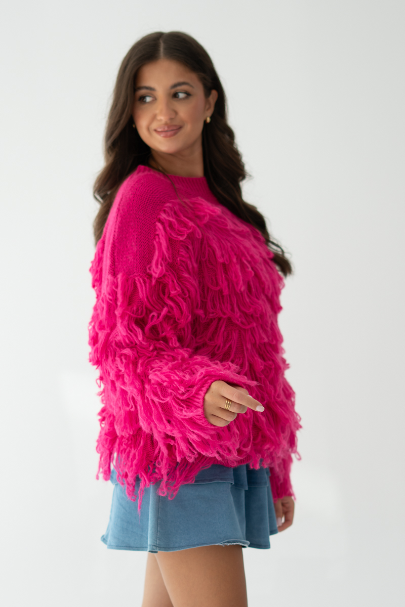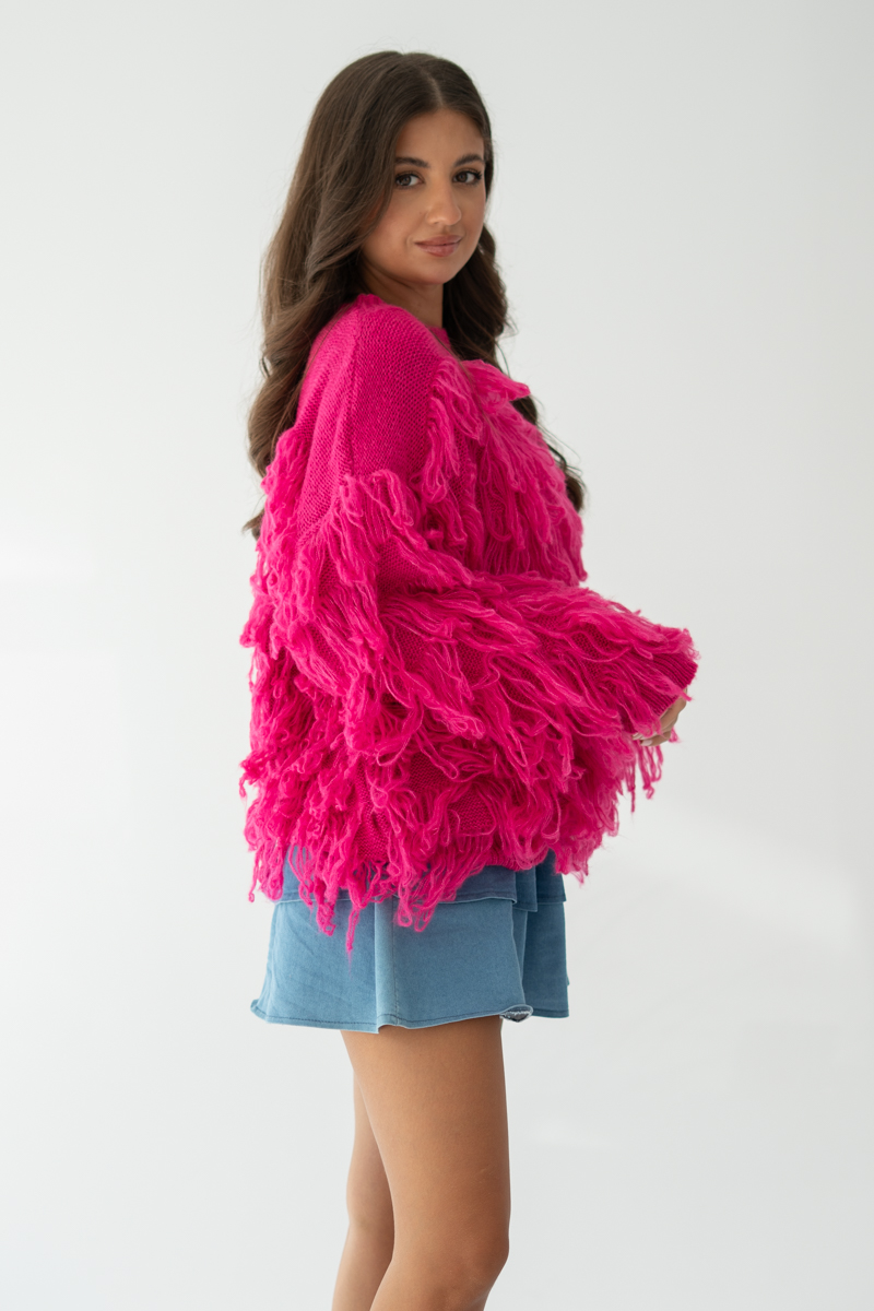 Różowy sweter Solyssa z frędzlami w stylu boho to wyrazista propozycja, która doda charakteru każdej stylizacji. Wykonany z miękkiego, przyjemnego w dotyku materiału, zapewnia wygodę i ciepło w chłodniejsze dni. Ozdobne frędzle nadają mu oryginalnego, modnego wyglądu i sprawiają, że stylizacja staje się niepowtarzalna. Luźny fason pasuje zarówno do jeansów, jak i spódnic, a intensywny różowy kolor pięknie ożywia look. To idealny wybór dla kobiet ceniących niebanalny styl i odważne akcenty w garderobie.