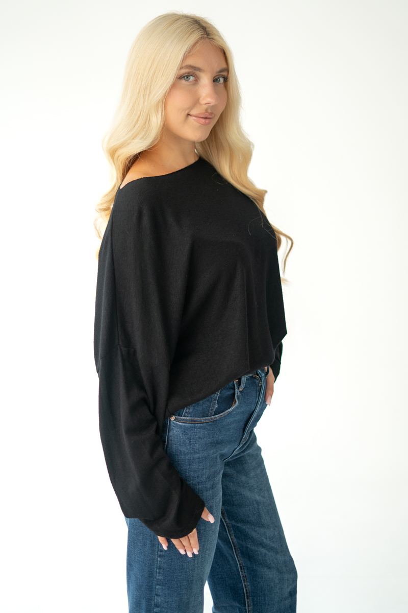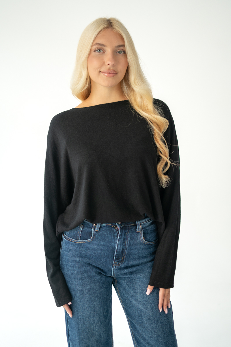 Sweter Basic z wiskozy w kolorze czarnym to ponadczasowy element garderoby, który sprawdzi się w wielu stylizacjach. Wykonany z miękkiej, lekkiej tkaniny, gwarantuje wygodę i swobodę ruchów przez cały dzień. Luźniejszy fason z opadającym ramieniem nadaje mu nowoczesnego charakteru, a prosty krój ułatwia łączenie z różnymi dodatkami. Klasyczna czerń sprawia, że sweter jest niezwykle uniwersalny – pasuje zarówno do casualowych zestawów z jeansami, jak i do bardziej eleganckich stylizacji ze spodniami czy spódnicą. To praktyczny wybór, który łączy komfort i styl w jednym.