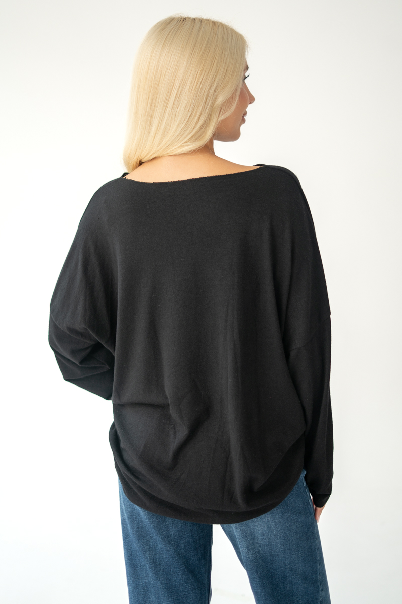 Sweter z wiskozy o klasycznym kroju Czarny – Basivora