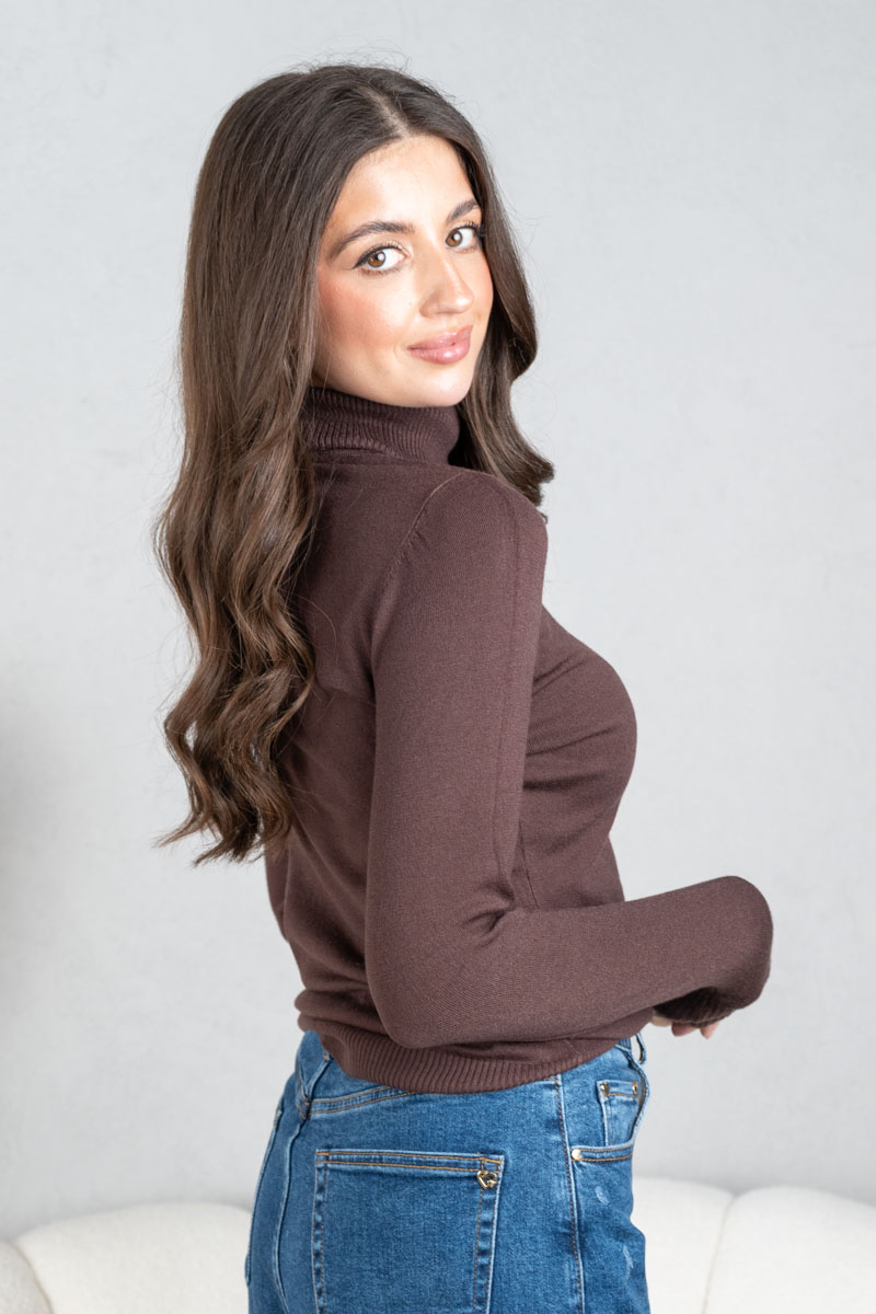 Dzianinowy sweter z golfem Czekoladowy – Goldivra