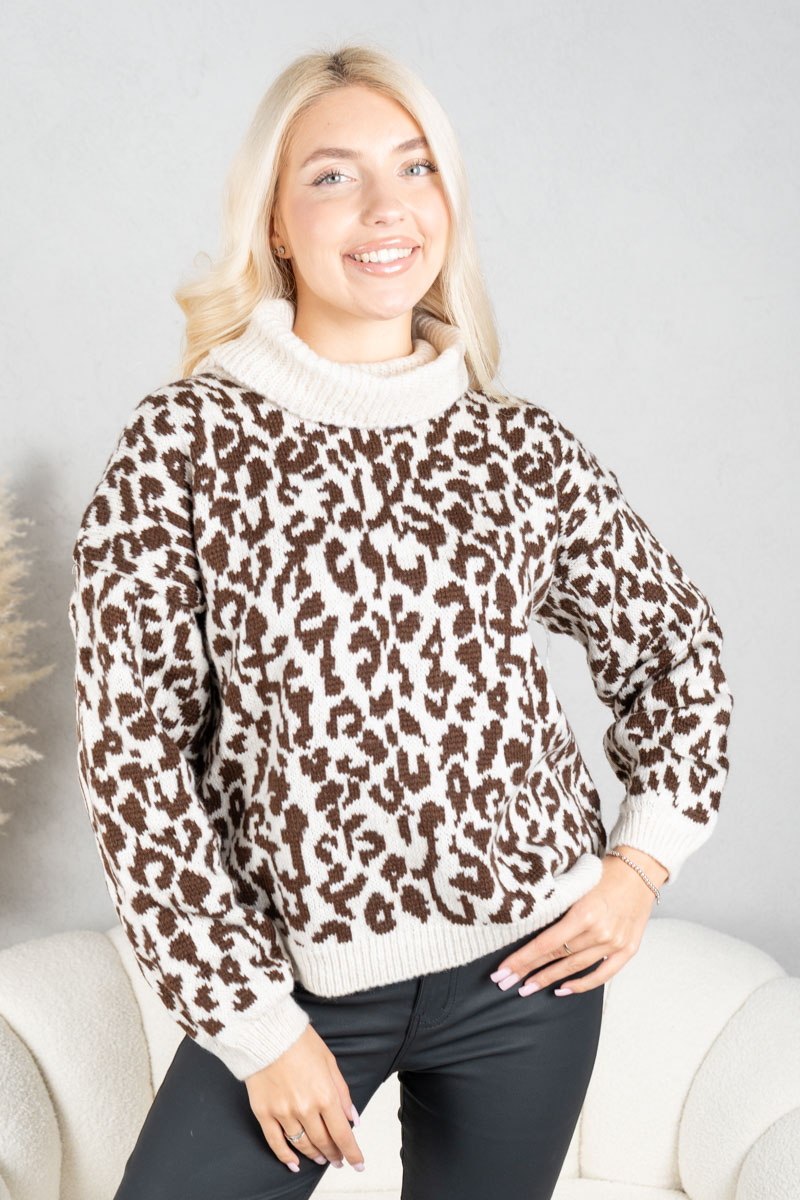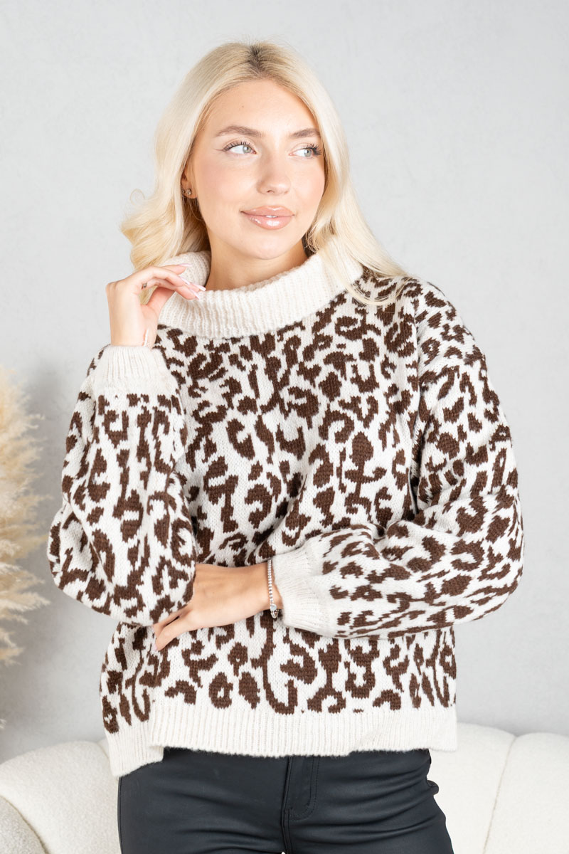 Sweter w panterkę z golfem Beżowy – Panthirra