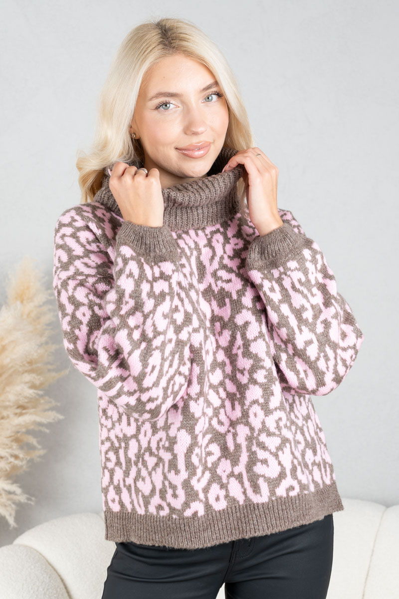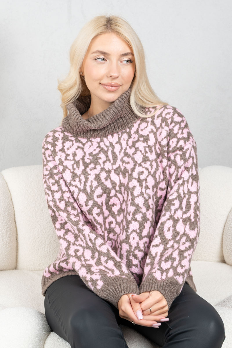 Sweter w panterkę z golfem Fango – Panthirra
