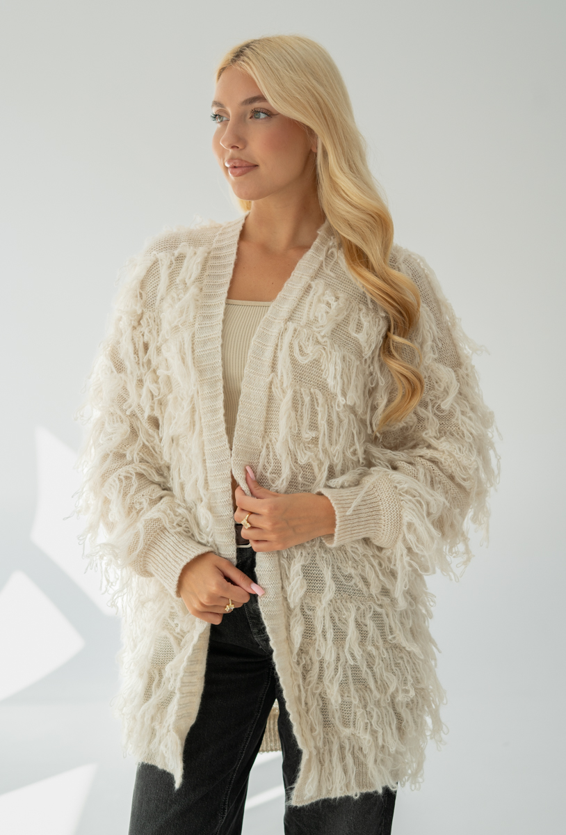 Kardigan dzianinowy z frędzlami dekoracyjnymi Beżowy – Zerlyne