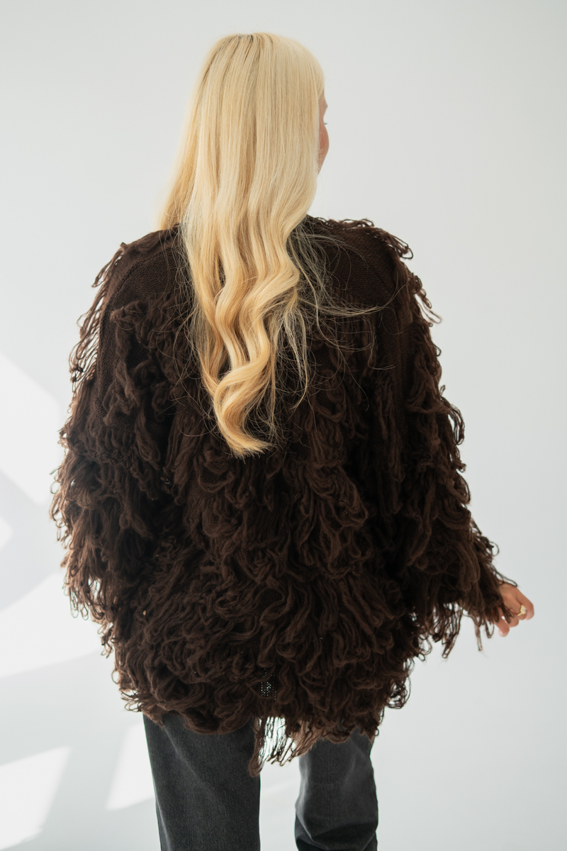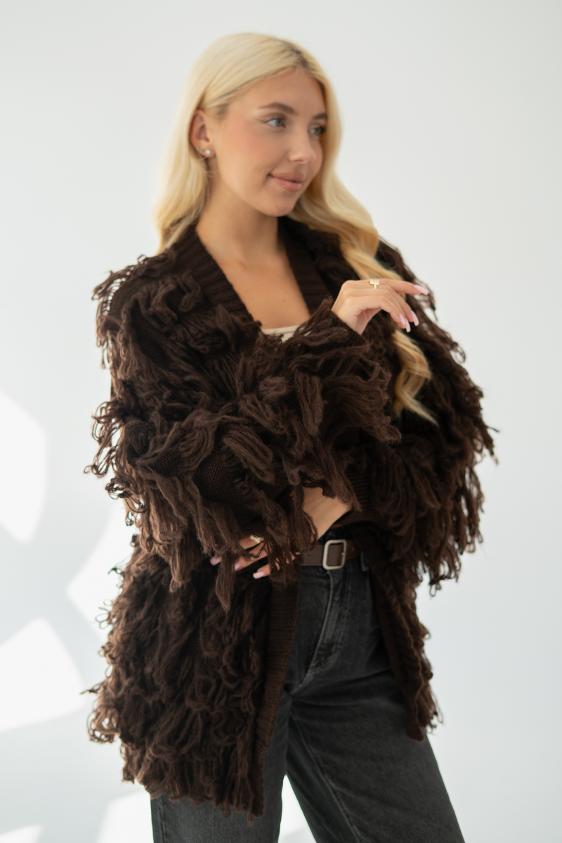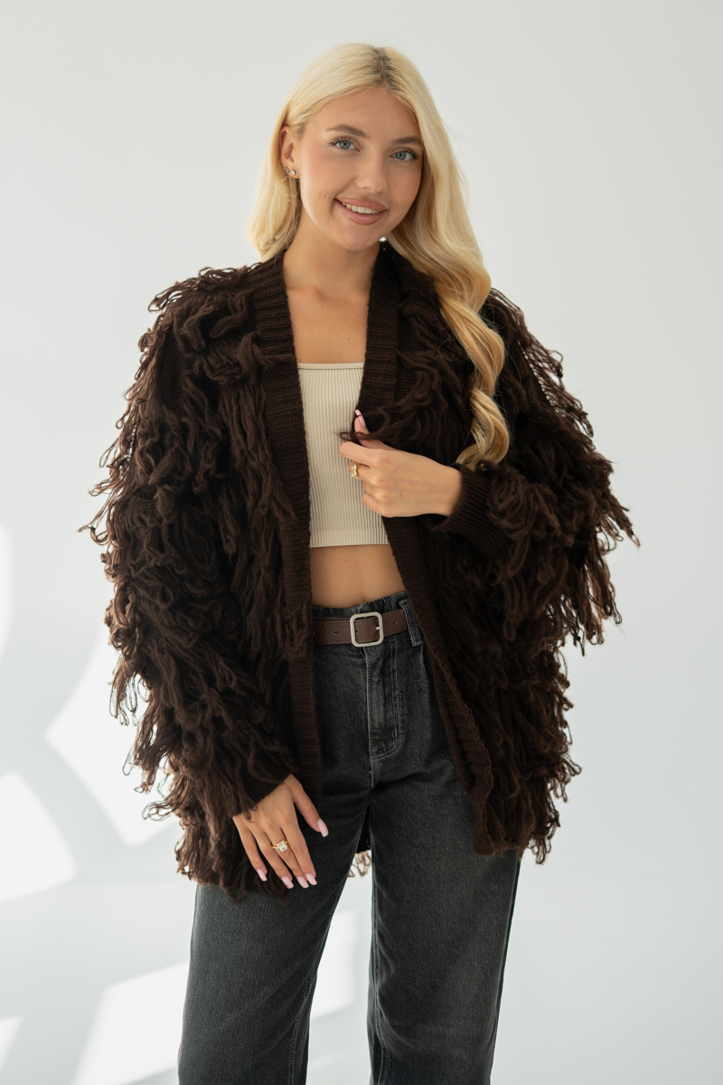 Kardigan dzianinowy z frędzlami dekoracyjnymi Czekoladowy – Zerlyne