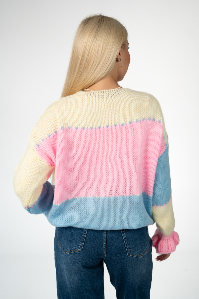 Cytrynowy kardigan ze złotymi guzikami to energetyczny akcent, który rozświetli każdą stylizację. Intensywny, soczysty kolor przyciąga wzrok i dodaje pewności siebie, a złote guziki subtelnie przełamują jego wyrazistość eleganckim detalem. Wykonany z miękkiej, przyjemnej w dotyku dzianiny, zapewnia komfort i swobodę ruchów przez cały dzień. Ten kardigan świetnie sprawdzi się jako główny element stylizacji – pasuje zarówno do klasycznych jeansów, jak i do spódnicy czy eleganckich spodni. To idealny wybór dla kobiet, które lubią wyróżniać się modą i łączyć wygodę z odważnym stylem.