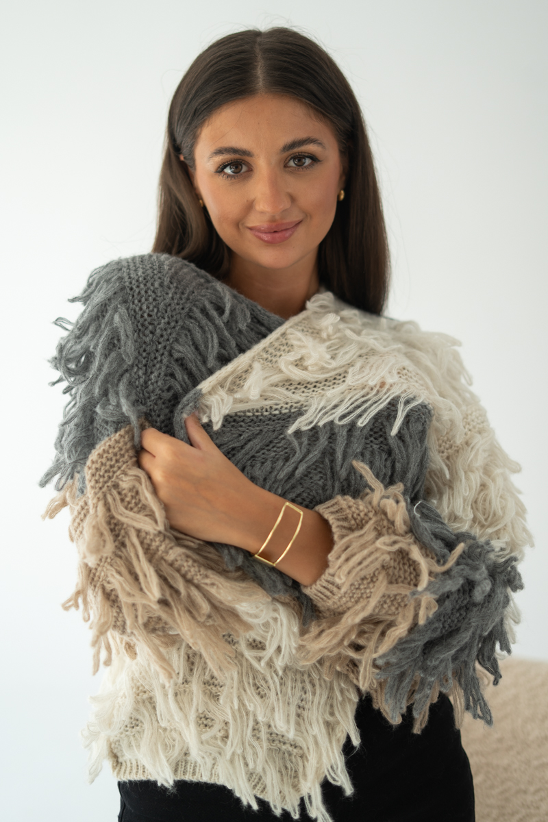 Kolorowy kardigan z frędzlami Szary – Clarynne