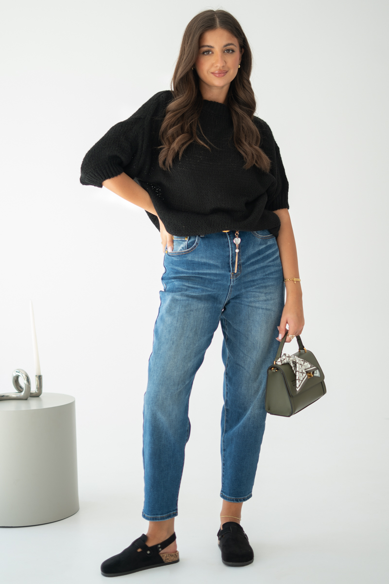 Sweter gładki basic z okrągłym dekoltem Czarny – Lorivienne to klasyczna propozycja, która sprawdzi się w wielu codziennych stylizacjach. Wykonany z miękkiego, przyjemnego w dotyku materiału, zapewnia komfort noszenia i ciepło w chłodniejsze dni. Ma prosty, minimalistyczny fason z okrągłym dekoltem i krótkimi, lekko bufiastymi rękawami, które dodają mu subtelnego charakteru. Uniwersalny czarny kolor sprawia, że sweter łatwo dopasować zarówno do jeansów, jak i eleganckiej spódnicy, tworząc stylowy look na każdą okazję.