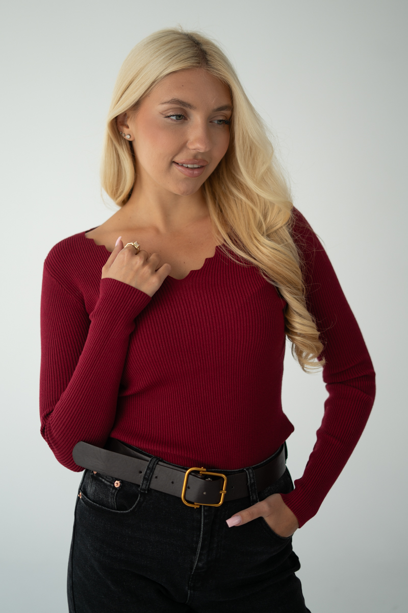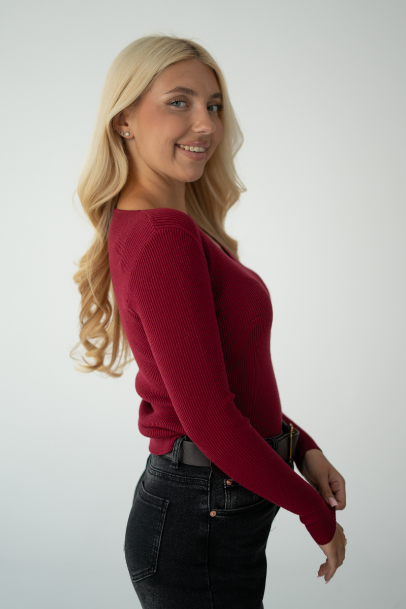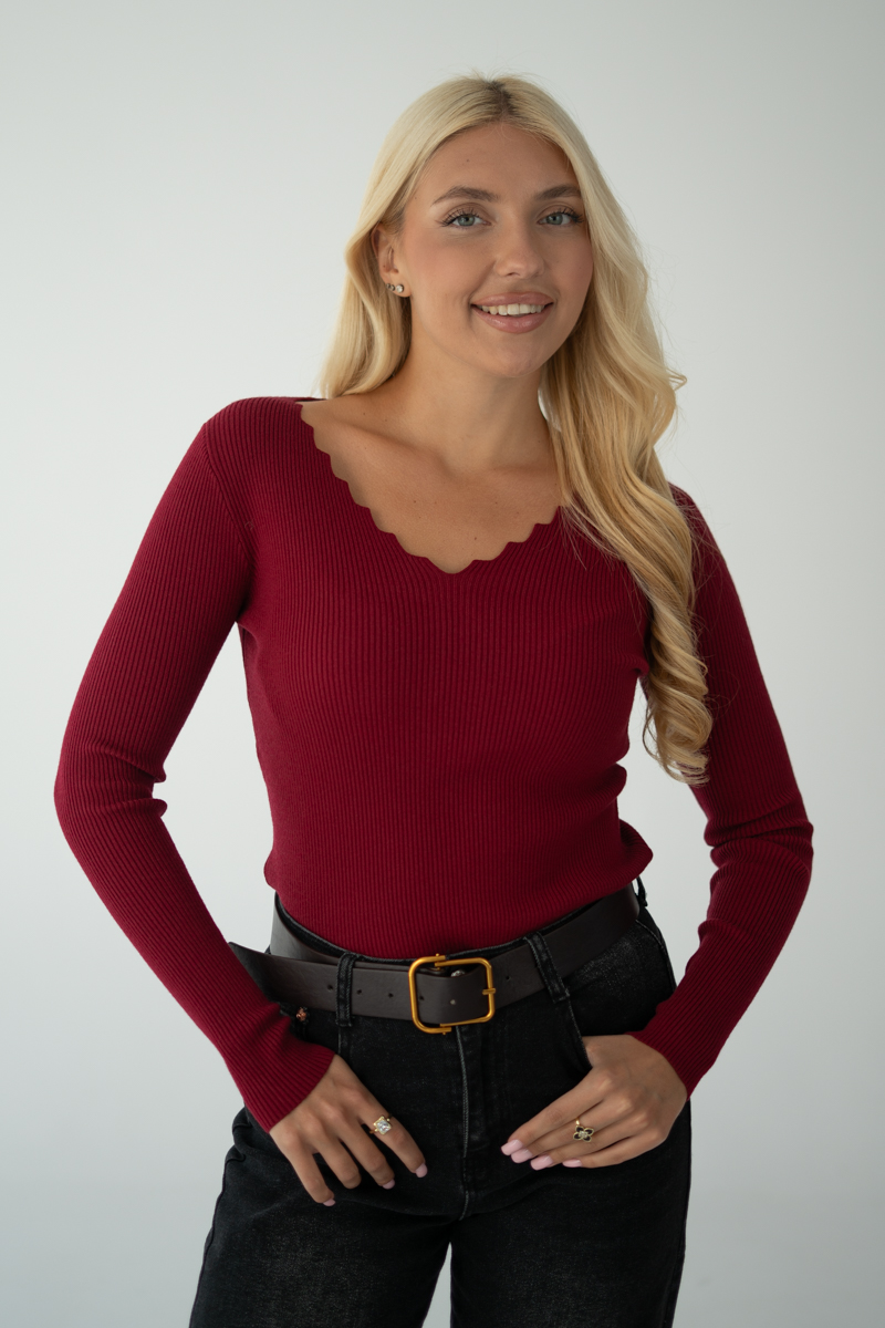 Sweter z dekoltem w serek Bordowy – Serenyae
