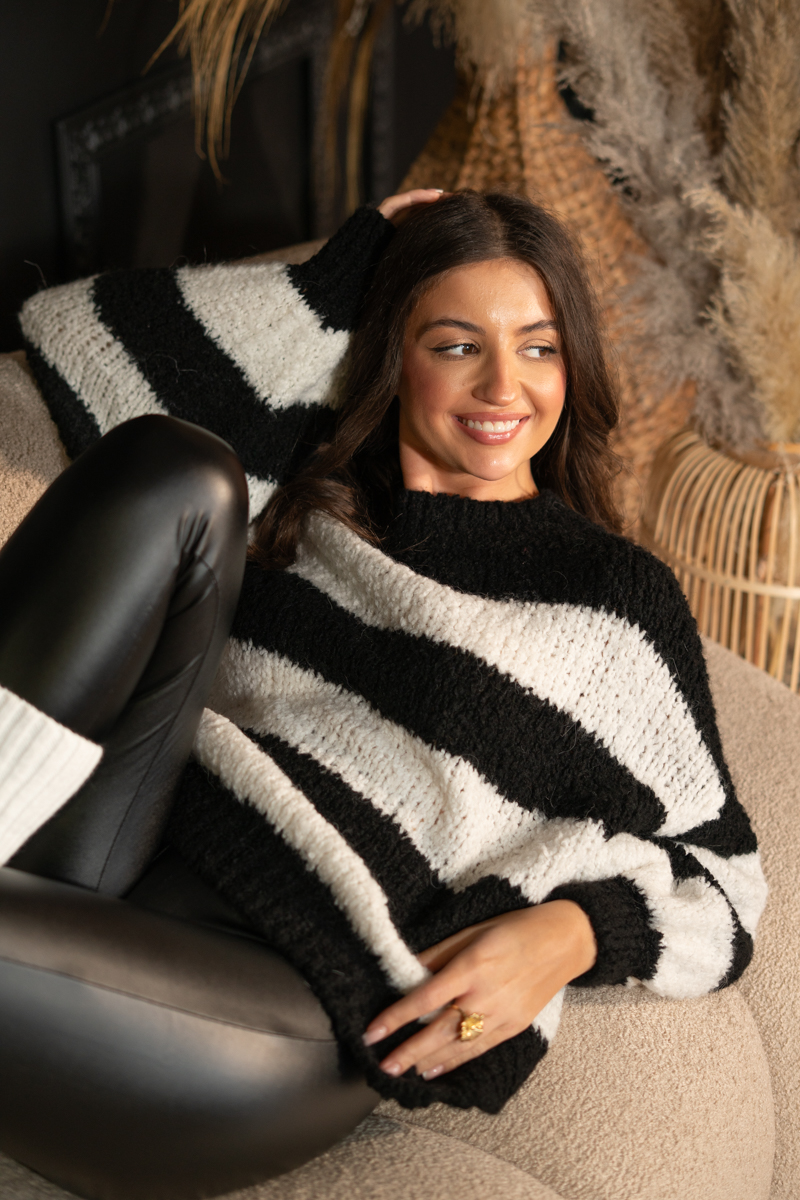 Mięsisty sweter damski w paski Czarny – Stravira
