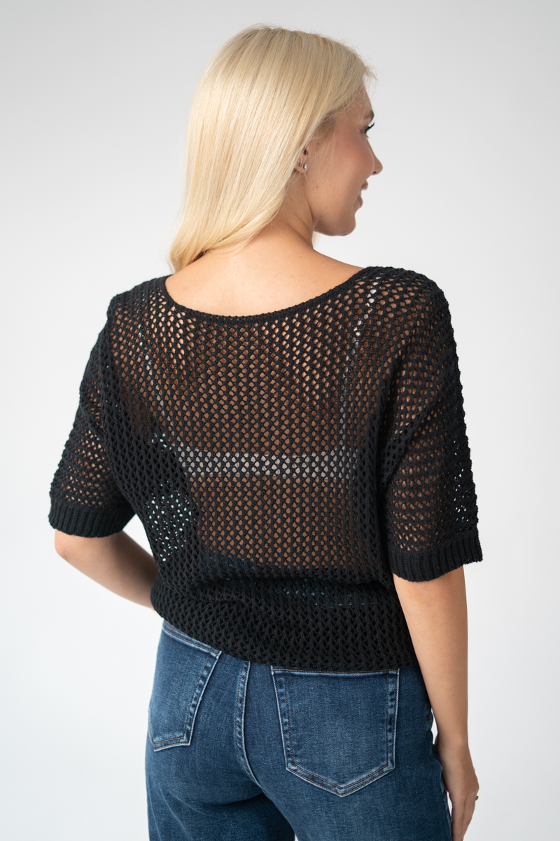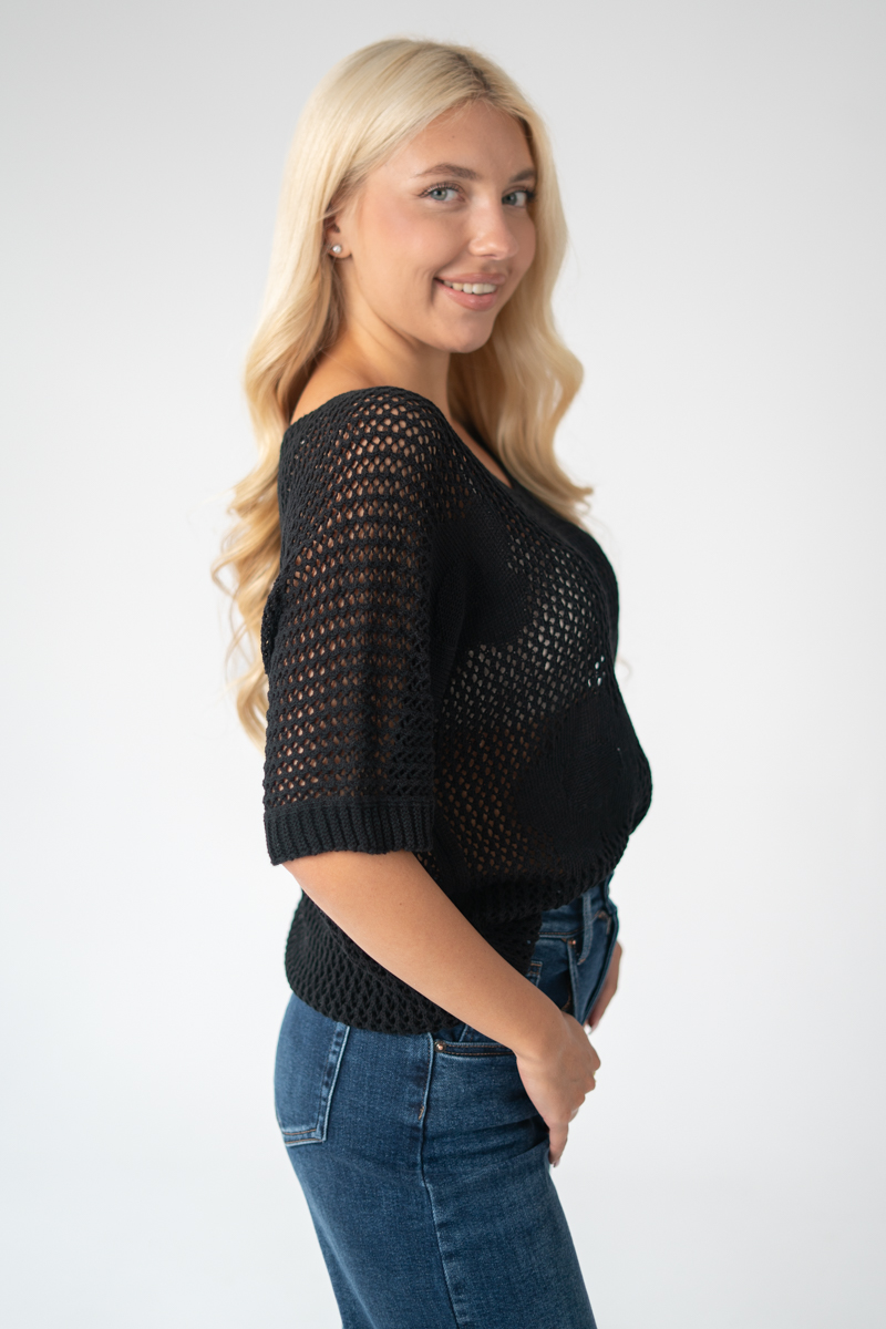 Sweter ażurowy damski Czarny – Florissea