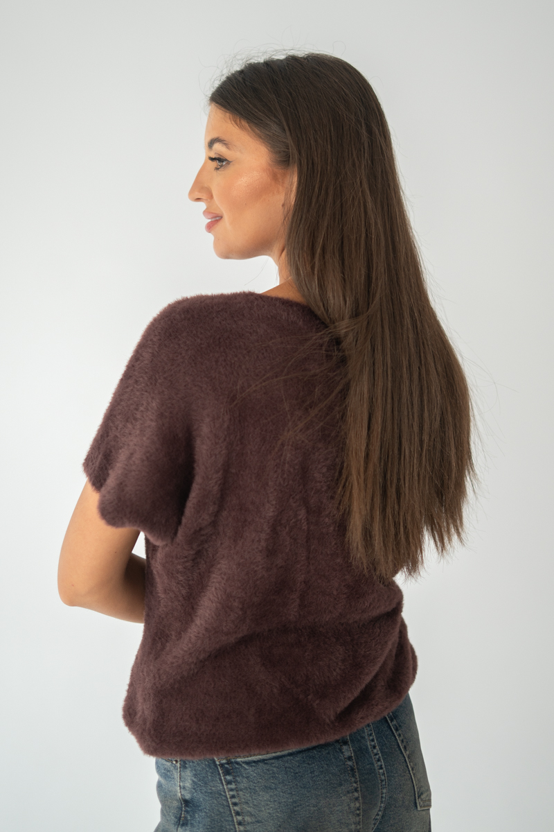 Sweter damski z krótkim rękawem Czekoladowy – Anveline