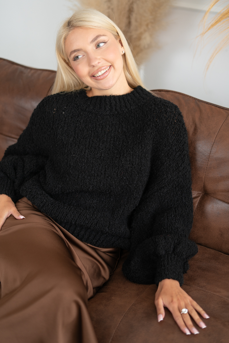Sweter moherowy oversize Moirenne w klasycznej czerni to ponadczasowy element garderoby, który łączy wygodę z elegancją. Wykonany z miękkiej, puszystej dzianiny, zapewnia ciepło i przyjemny komfort noszenia w chłodniejsze dni. Luźny, oversize’owy krój gwarantuje swobodę ruchów i nowoczesny, lekko nonszalancki wygląd. Okrągły dekolt nadaje mu uniwersalnego charakteru, dzięki czemu łatwo zestawić go zarówno z jeansami, jak i ze spódnicą czy eleganckimi spodniami. Klasyczna czerń sprawia, że sweter pasuje do wielu stylizacji i stanowi niezawodną bazę w jesienno-zimowej garderobie.