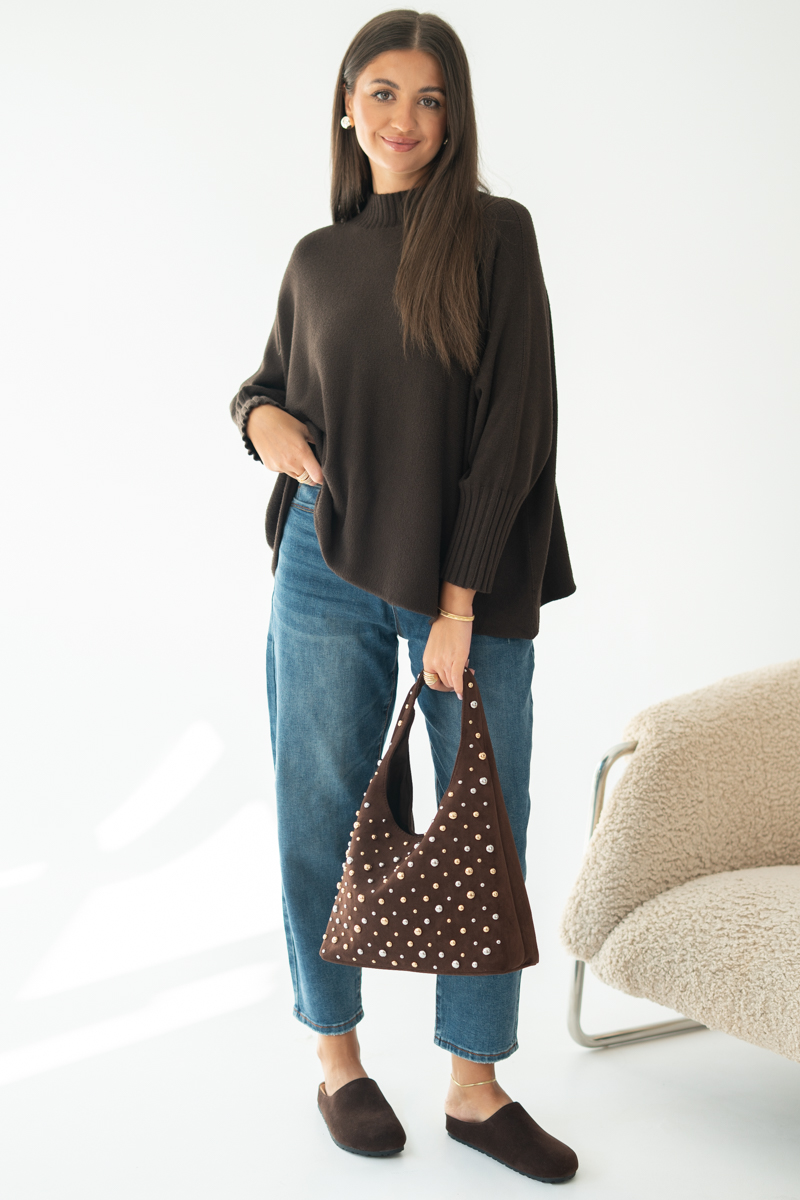 Sweter nietoperz oversize Czekoladowy – Loravie