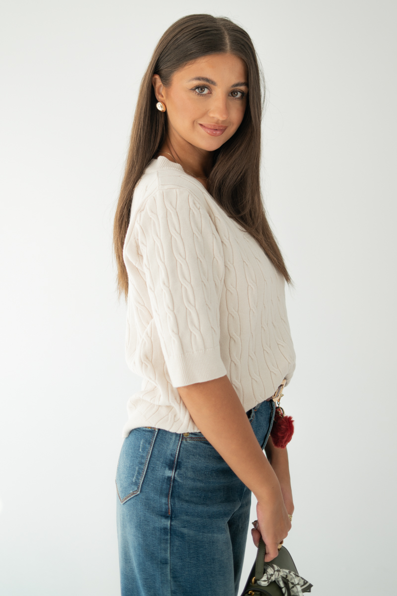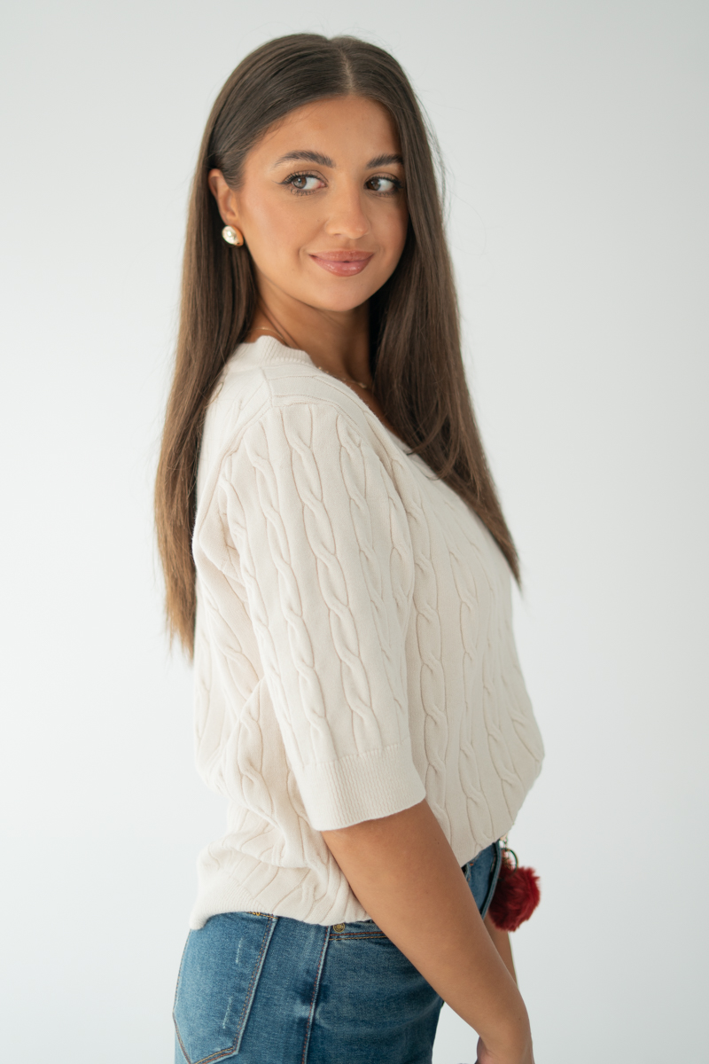 Sweter w jodełkę z dekoltem V Beżowy – Nalvora