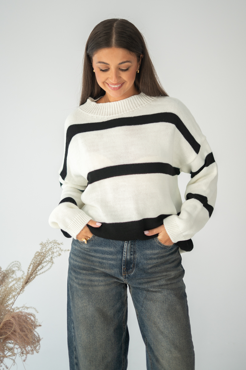 Sweter w pasy oversize Biały – Nalverra