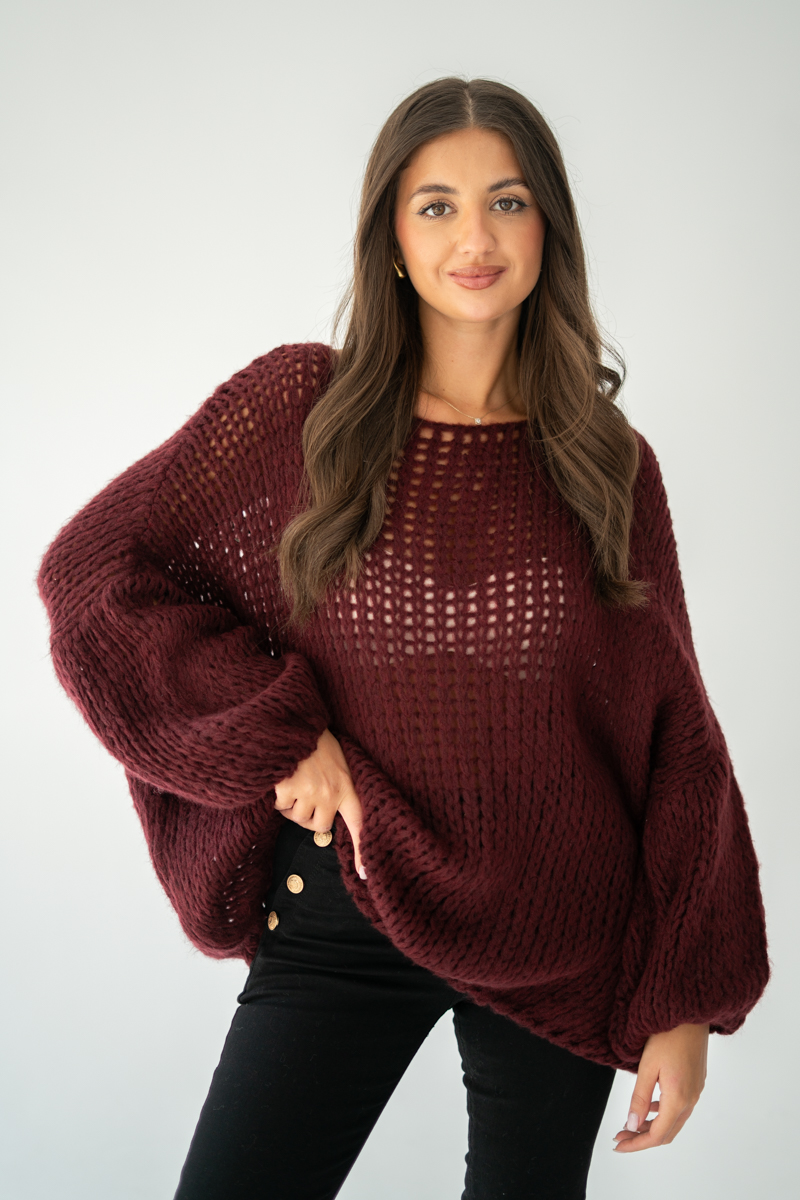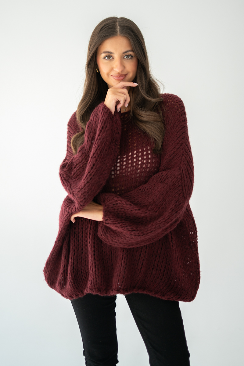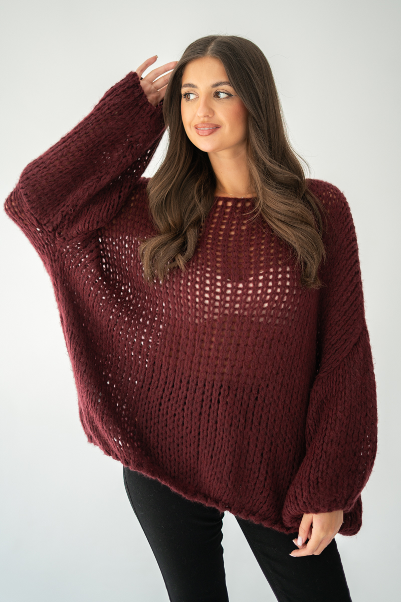 Sweter z grubym splotem Bordowy – Plainira
