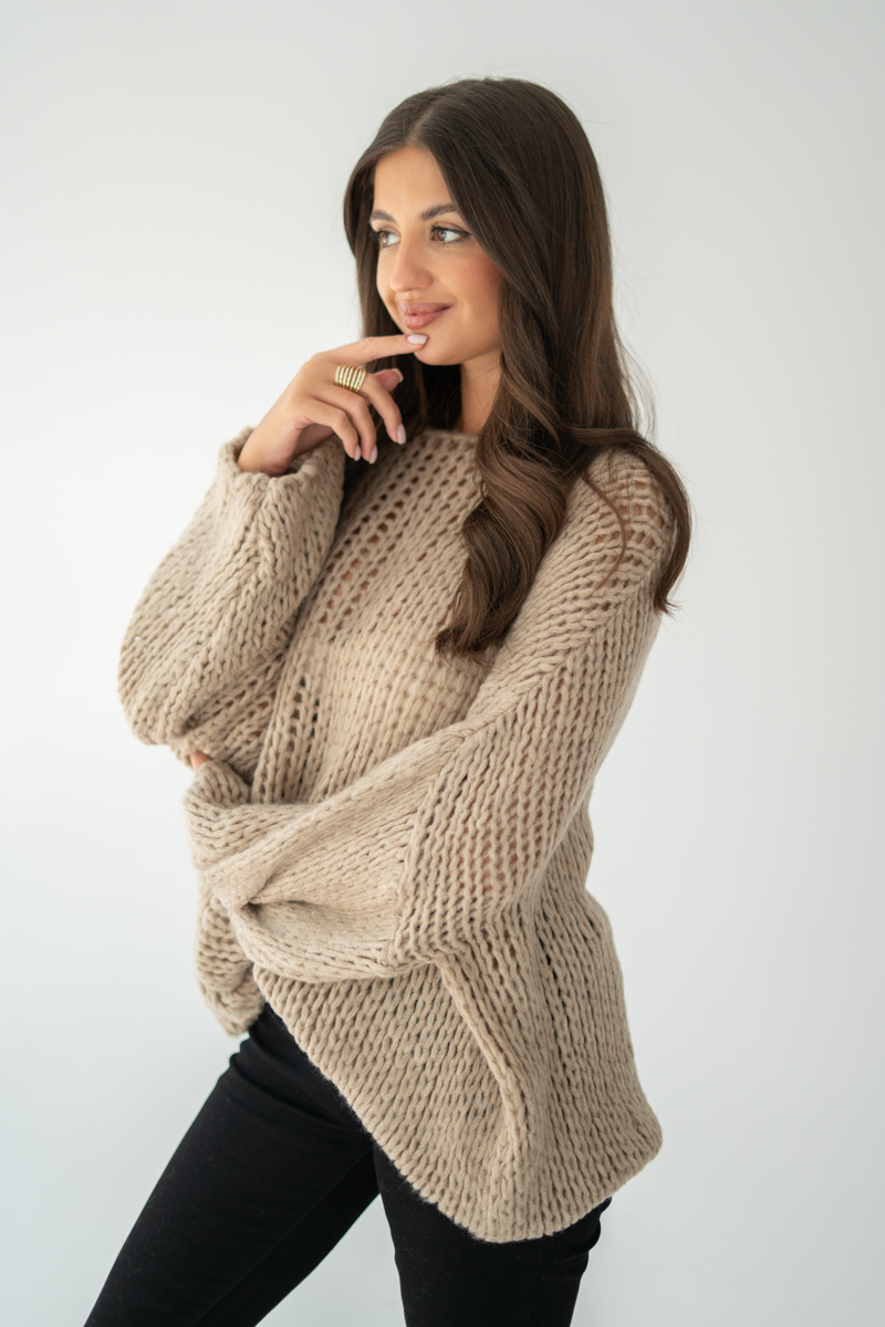 Sweter z grubym splotem to idealna propozycja na chłodniejsze dni, łącząca komfort z modnym wyglądem. Wykonany z miękkiej, przyjemnej w dotyku dzianiny, otula ciepłem i zapewnia wygodę noszenia. Charakterystyczny, gruby splot nadaje mu wyjątkowego uroku i sprawia, że prezentuje się stylowo oraz ponadczasowo. Luźniejszy fason doskonale komponuje się z jeansami, legginsami czy spódnicą, tworząc zarówno casualowe, jak i bardziej eleganckie zestawienia. To must-have w garderobie, który sprawdzi się w codziennych stylizacjach, a jednocześnie doda charakteru każdemu outfitowi.