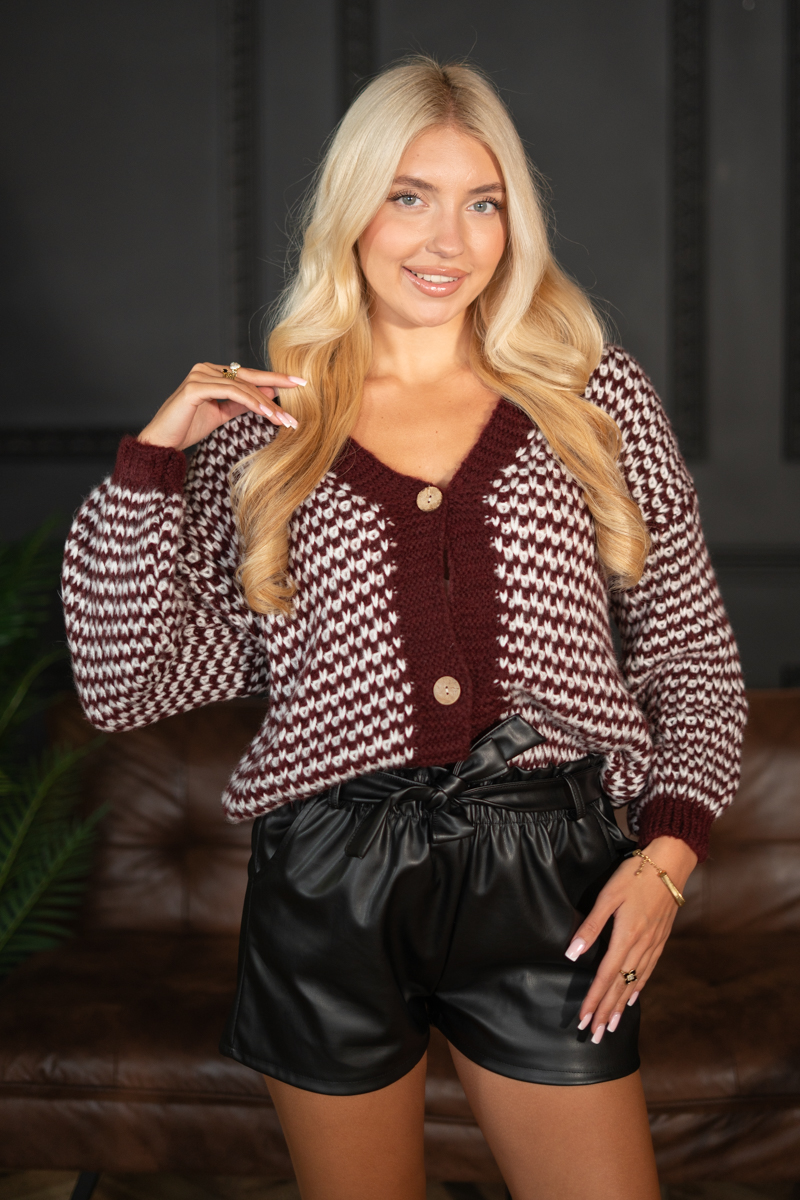 Sweter pepitka rozpinany Bordowy – Corivellea